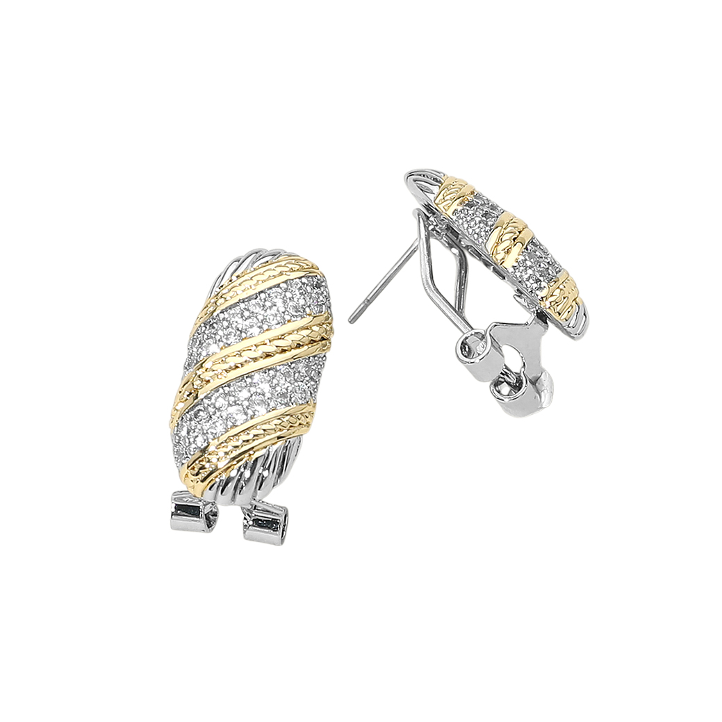 14K Gold Plated Two Tone CZ Stone Paved Oval Earrings