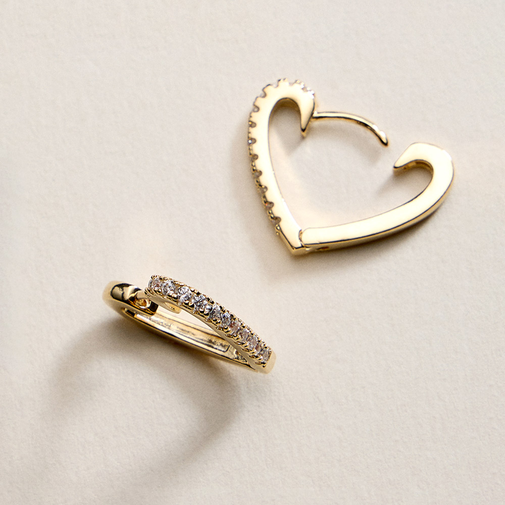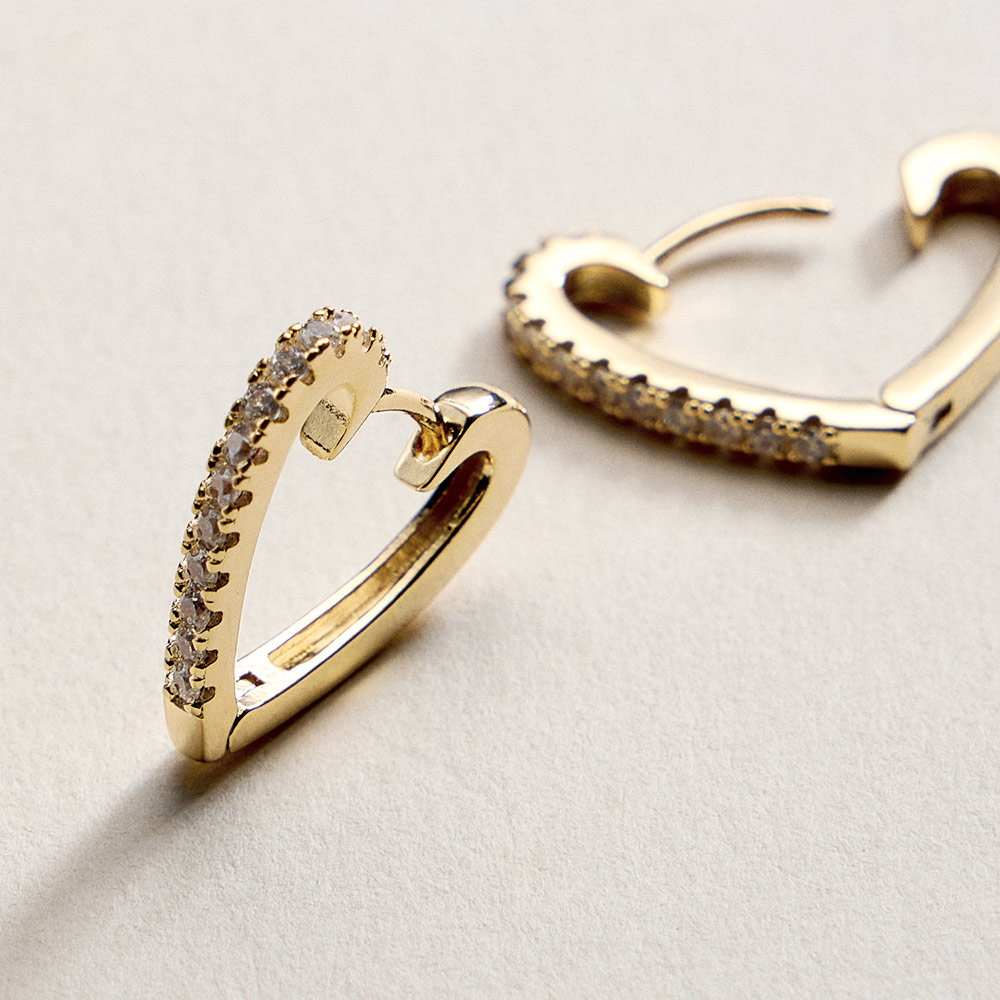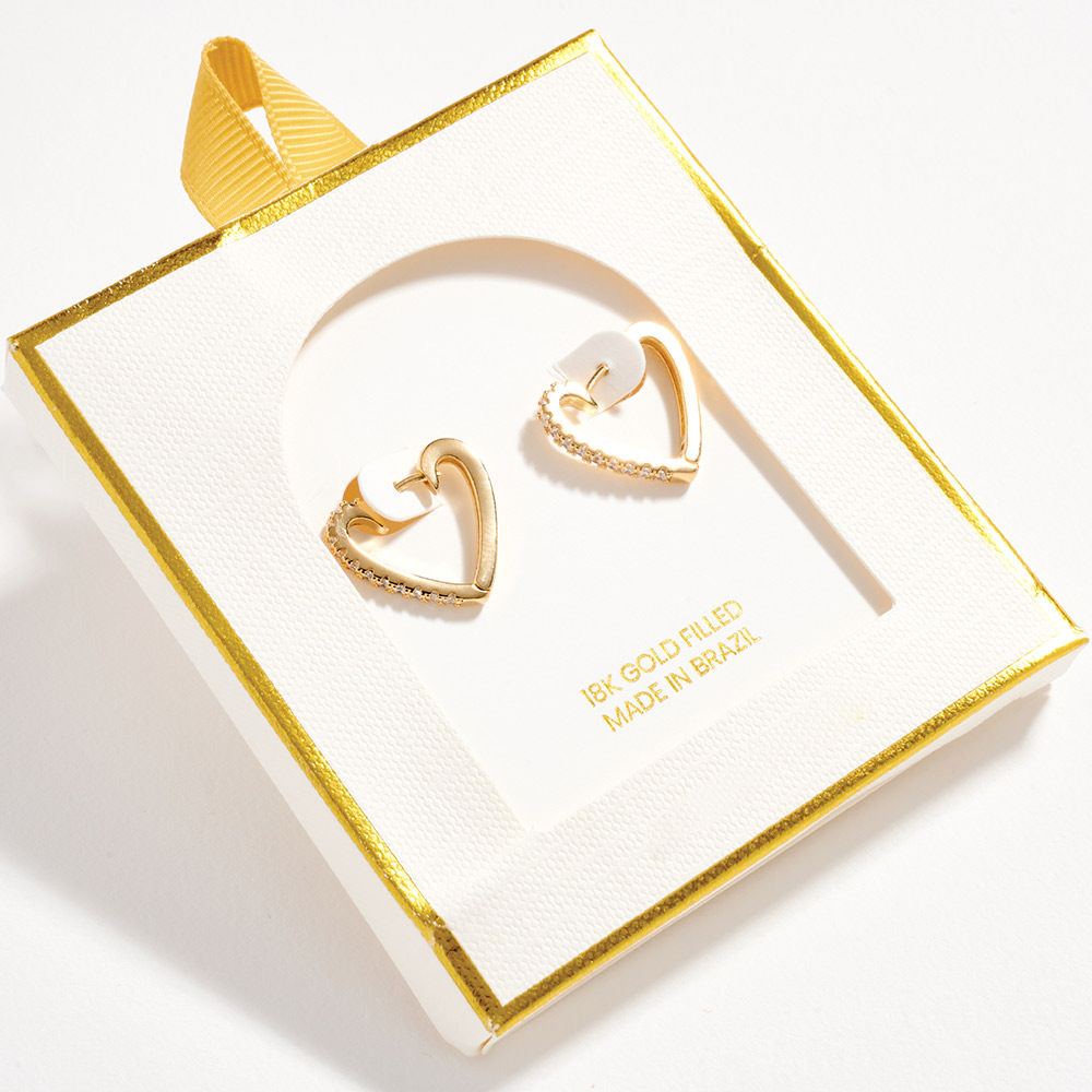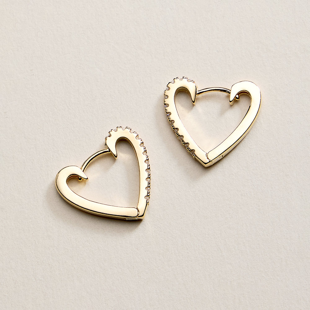 18K Gold Filled CZ Pave Heart Huggie Hoop Earrings