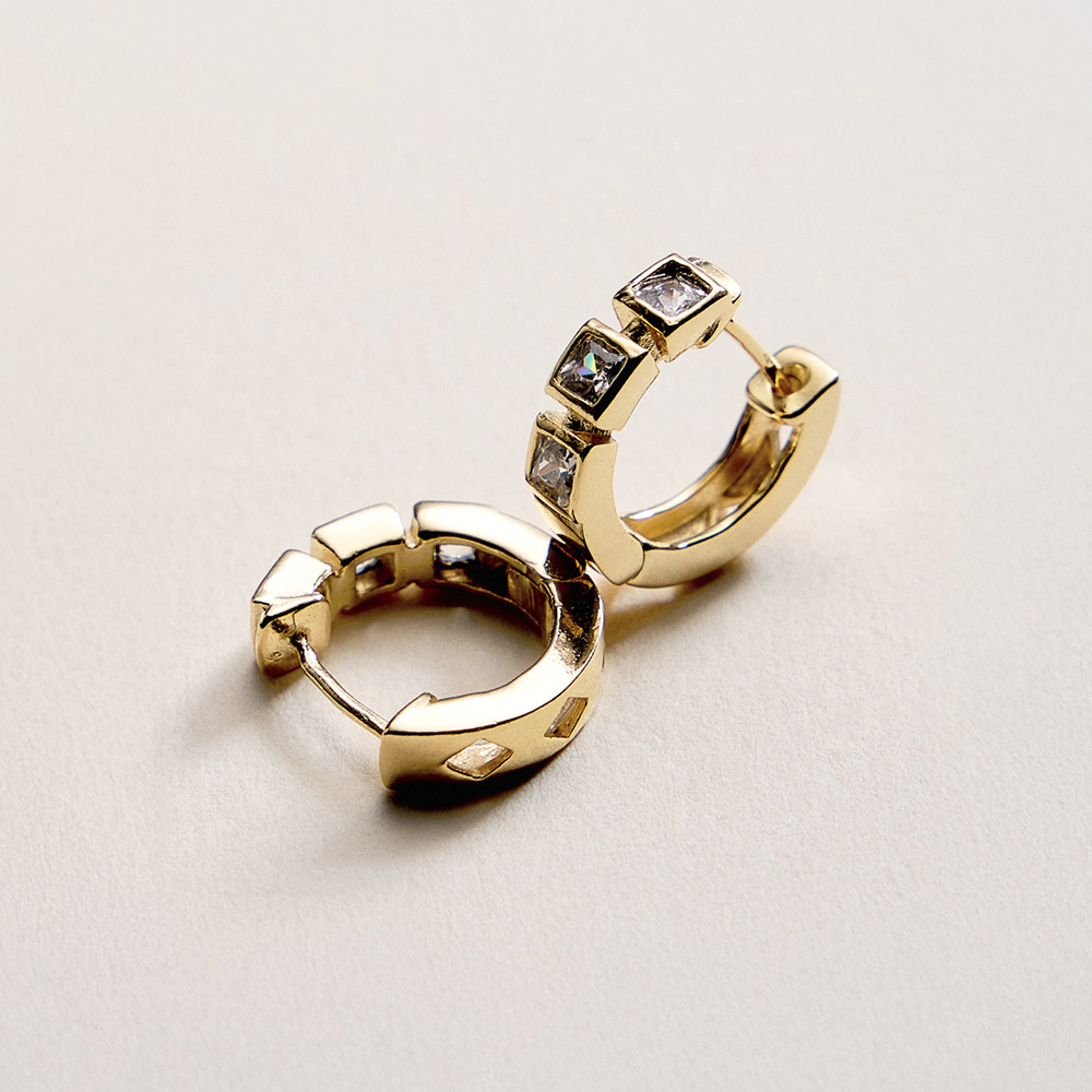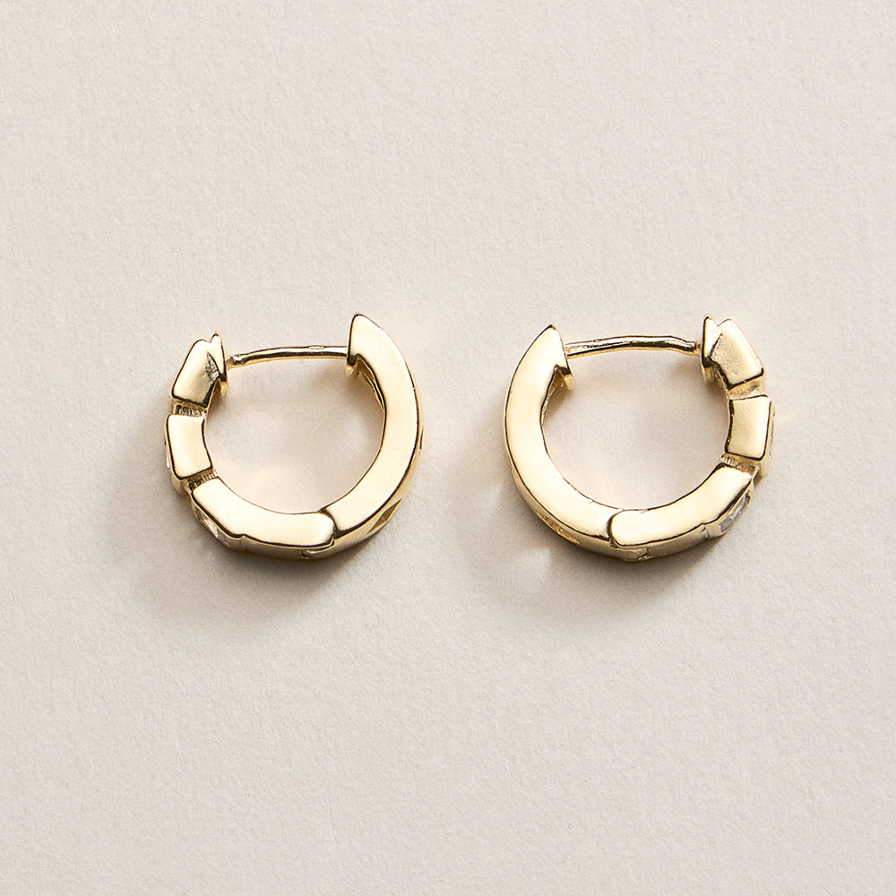 Details • Size : 0.7" X 0.6" X 0.2" • Huggie Back • Clean and compact huggie hoop earrings designed for a refined everyday look. Their smooth rounded shape offers comfortable wear while adding subtle polish to casual outfits, office styles, and layered ear looks. A versatile accessory ideal for daily styling and gifting. • CZ Cubic Zirconia • Gold Filled • Hypoallergenic • Lead and Nickel Compliant • Made In Brazil