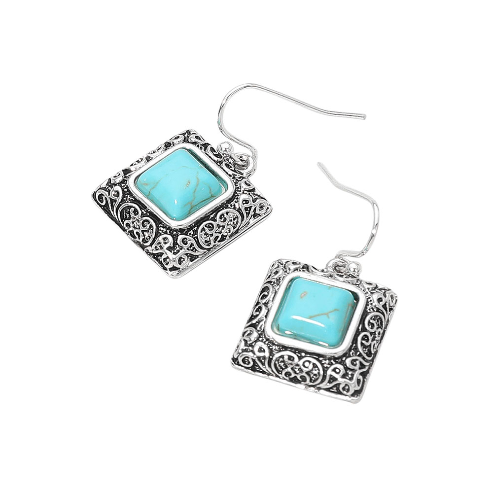 Antique Metal Scrollwork Frame Square Tile Drop Dangle Earrings