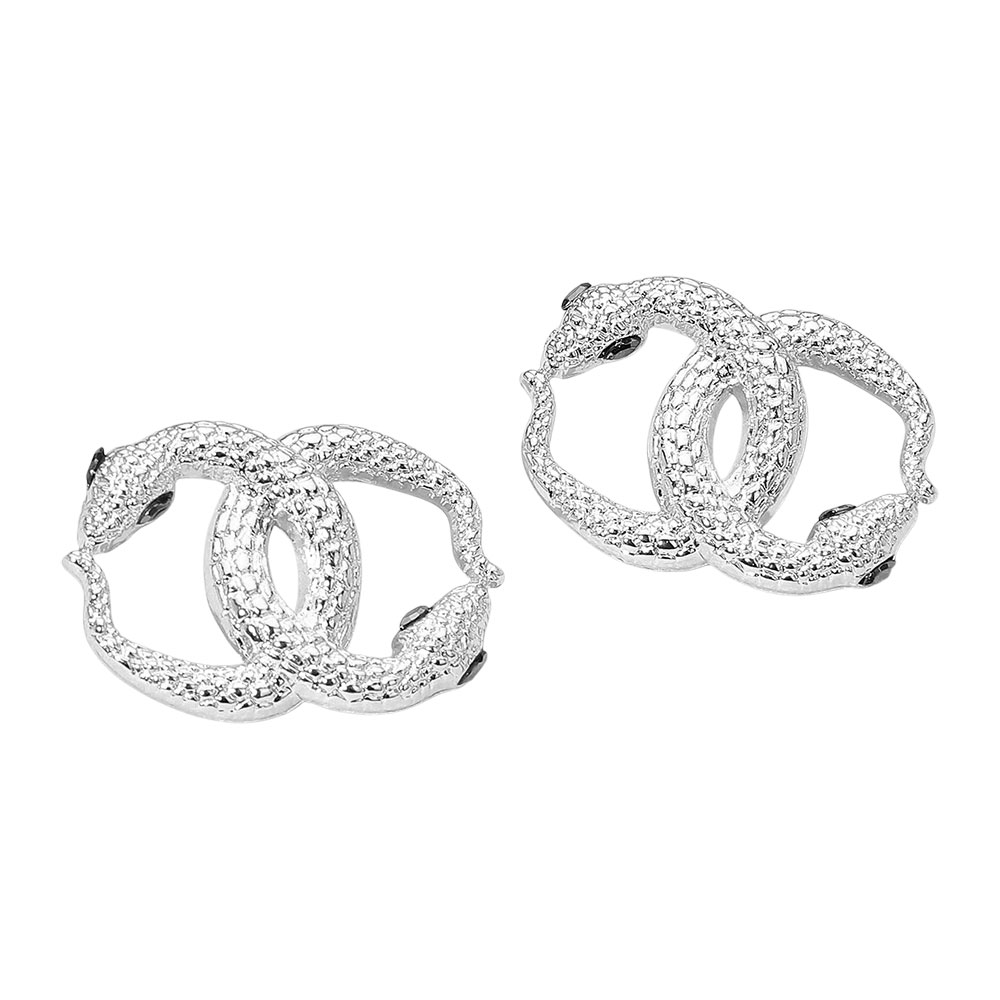 Bold Textured Metal Interlocking Snake Earrings Bold Textured Metal Interlocking Snake Earrings