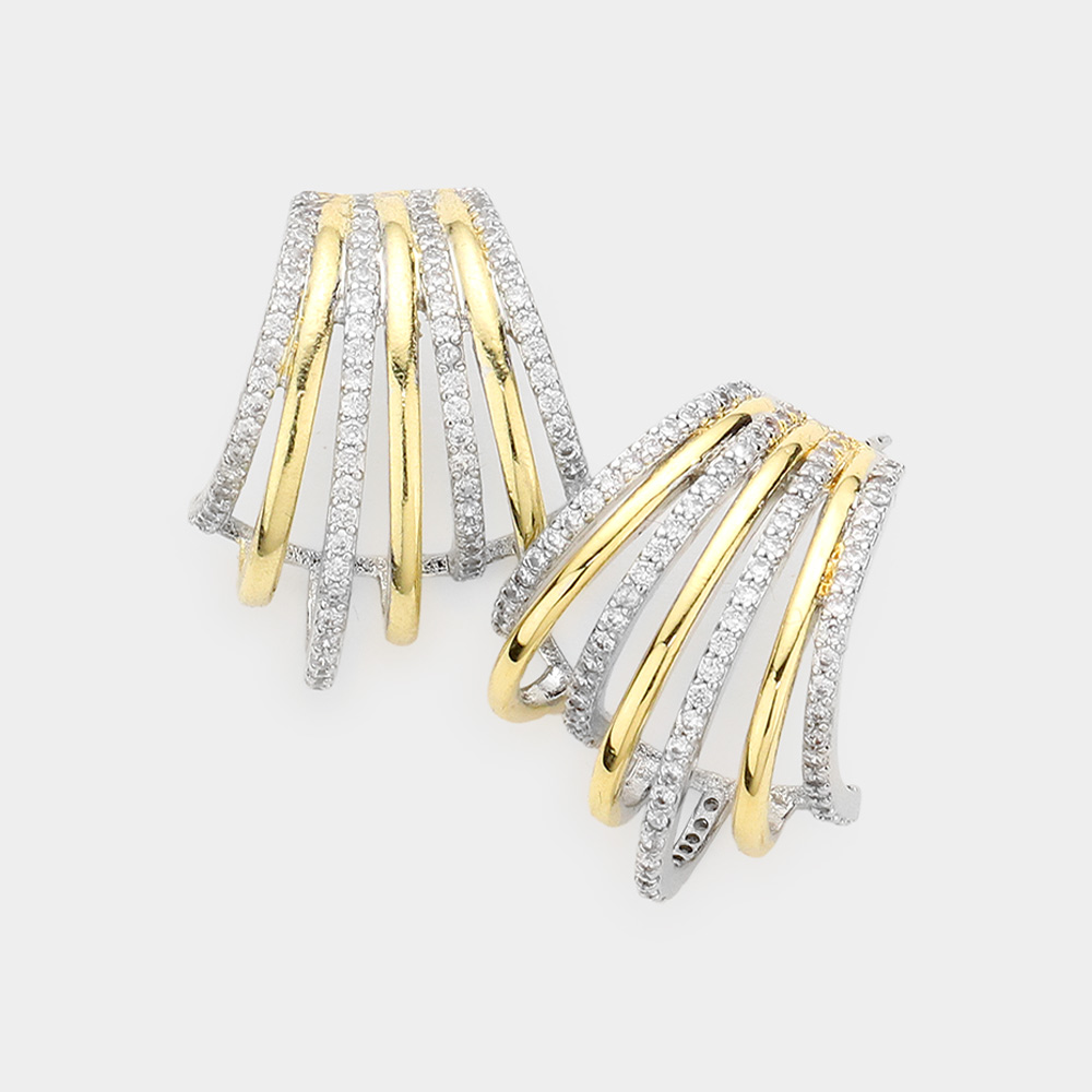 14K Gold Plated CZ Stone Embellished Crisscross Hoop Earrings