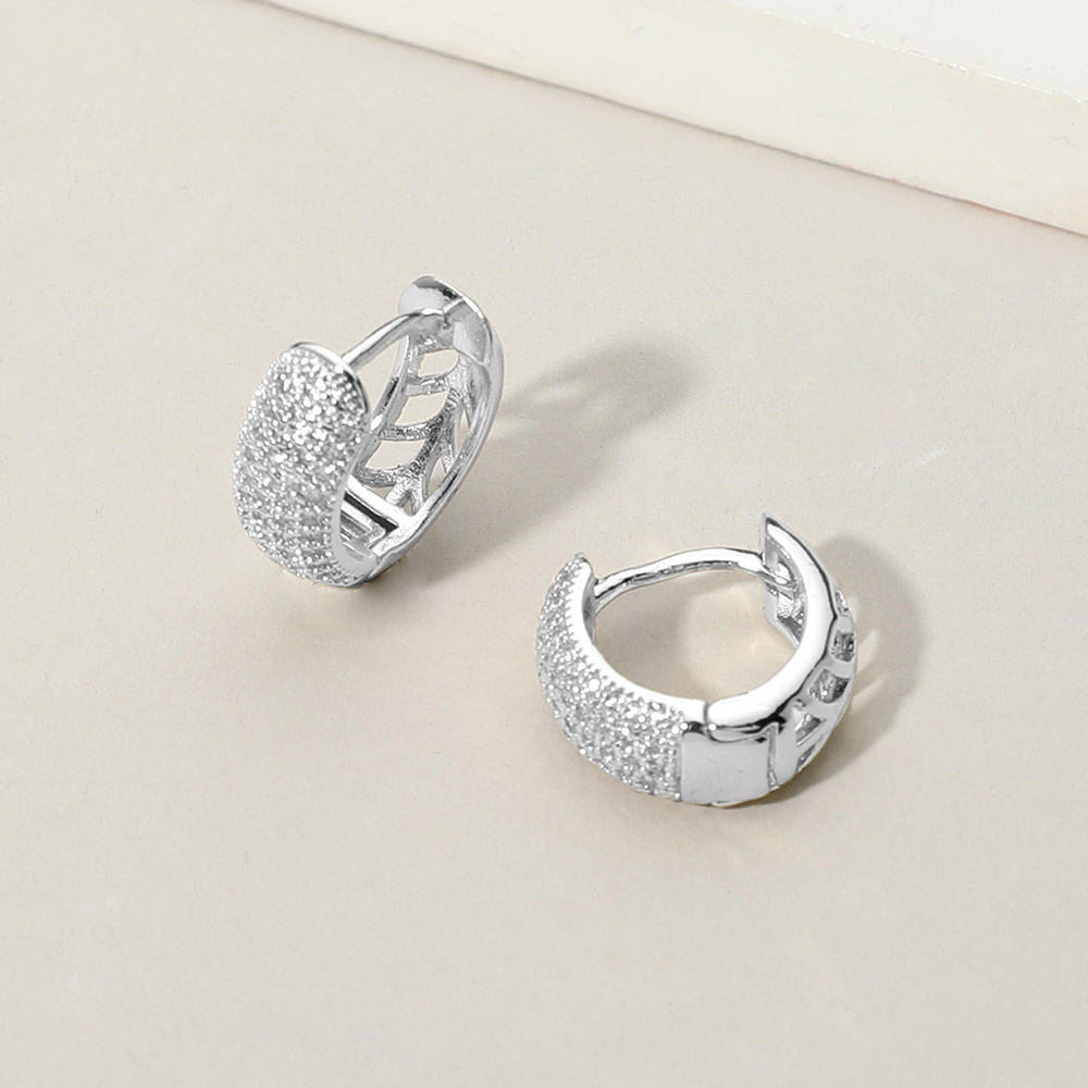 • These sculpted pavĂ© hoop earrings feature a refined, contemporary silhouette enhanced by a delicate lattice interior. Designed for lasting brilliance, they offer the perfect balance of structure and shimmer, making them an ideal accent for both formal and everyday elegance.
