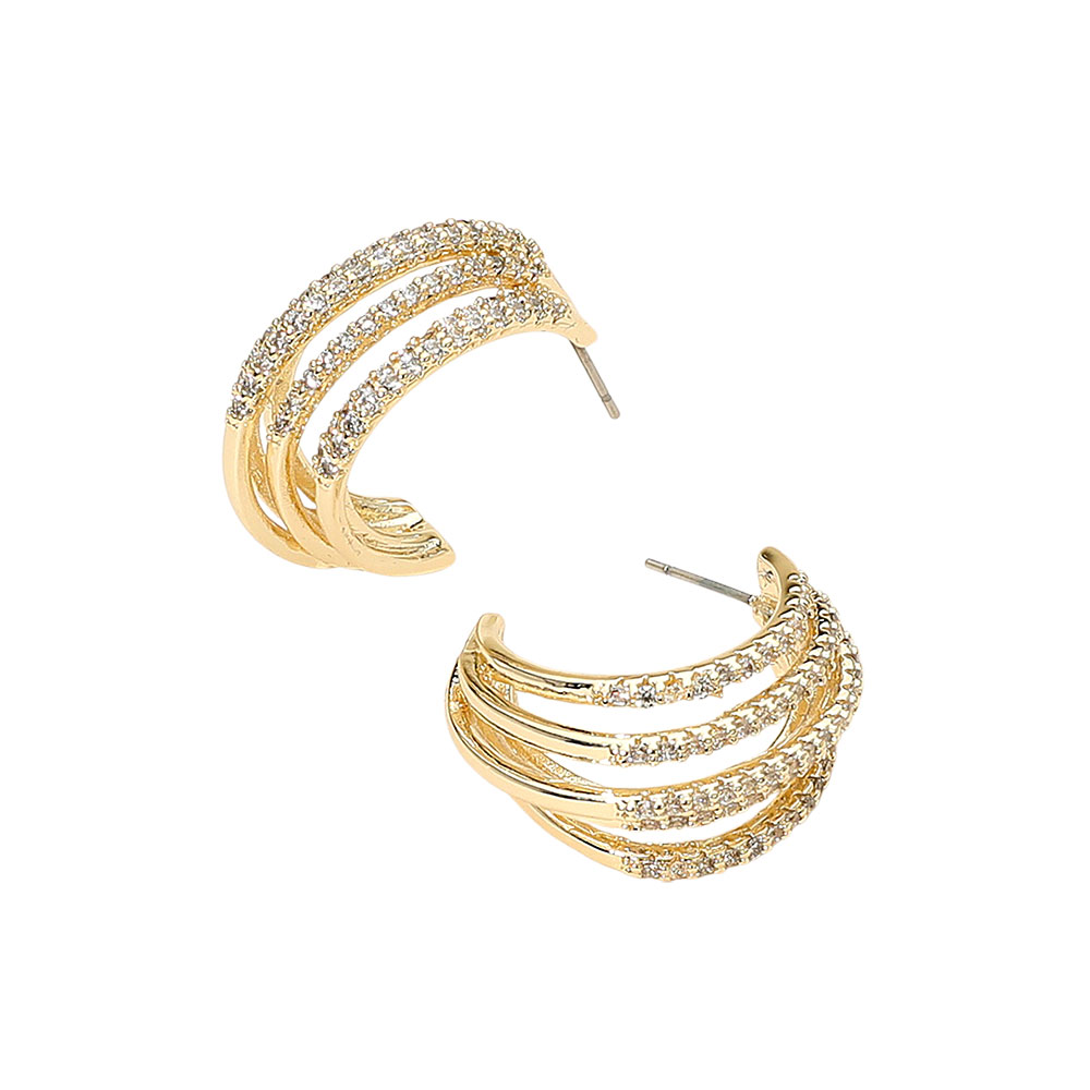 • Add a touch of luxury to your look with these layered hoop earrings adorned with radiant accents. Their bold, sculpted design exudes sophistication, making them the perfect choice for elevating both casual and evening outfits with timeless elegance.