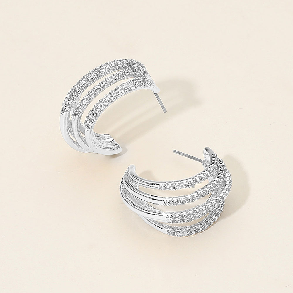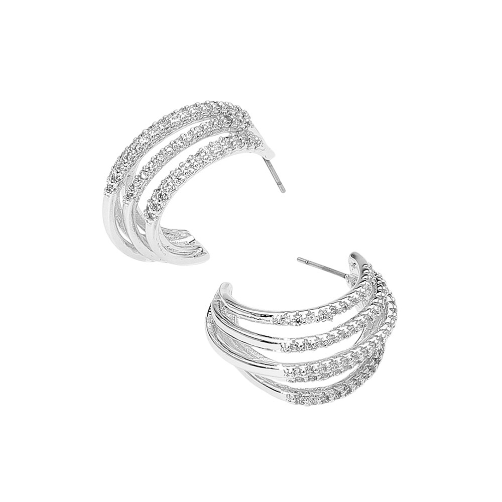 • Add a touch of luxury to your look with these layered hoop earrings adorned with radiant accents. Their bold, sculpted design exudes sophistication, making them the perfect choice for elevating both casual and evening outfits with timeless elegance.