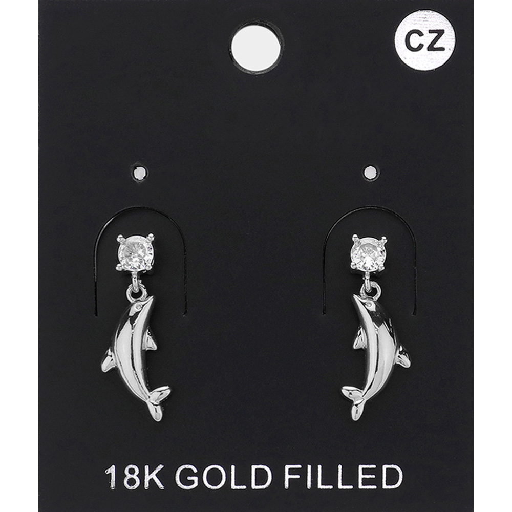 CZ Stone Pointed Metal Dolphin Dangle Earrings