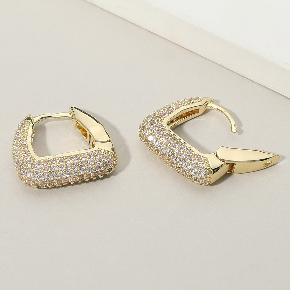• Enhance your look with these square pavĂ© hoop earrings that blend bold structure with refined sparkle. Their sleek geometric shape and radiant surface bring a touch of modern sophistication to any ensemble, perfect for both elegant and everyday styling.