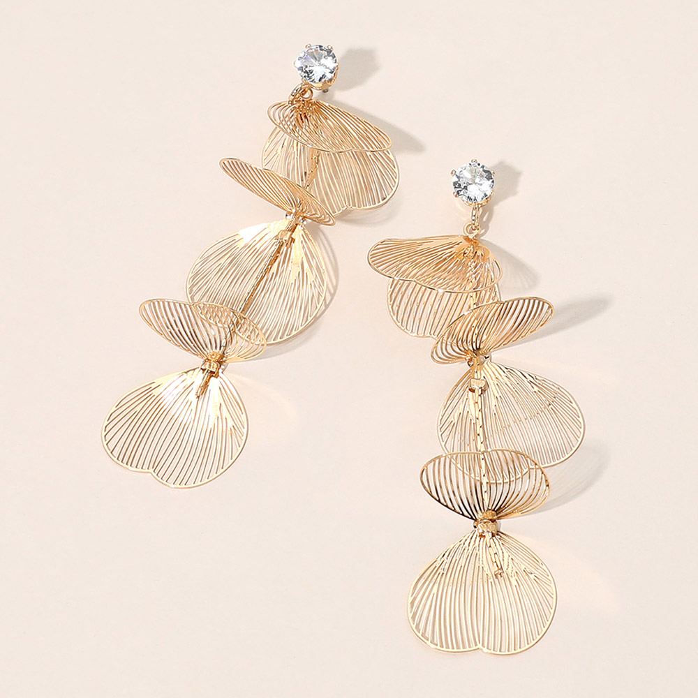 • Elegant multi layer drop statement earrings featuring a cascading sculpted design with airy openwork shapes and a refined crystal accent. Designed to create movement and dimension, these earrings elevate everyday outfits and special occasion looks with a bold yet graceful silhouette. Ideal for customers seeking modern statement drop earrings with a lightweight feel and eye-catching detail.