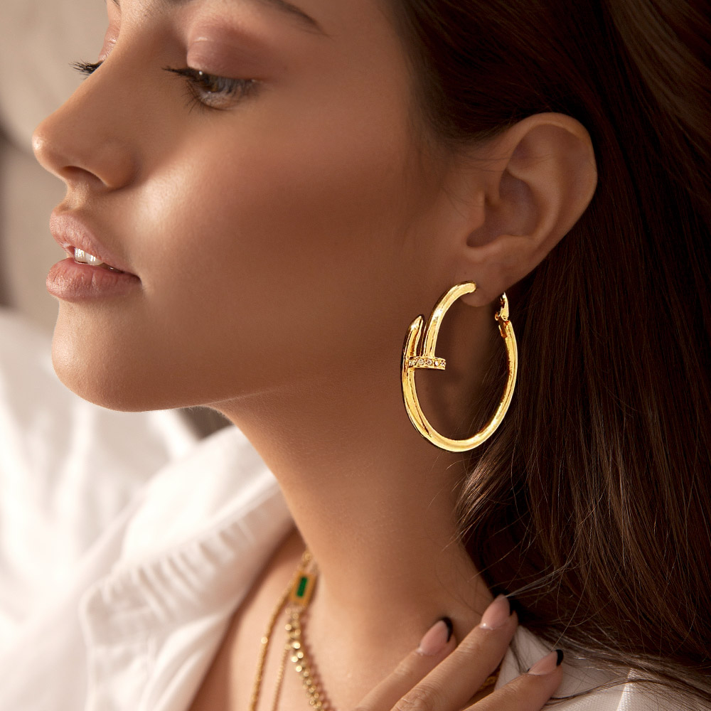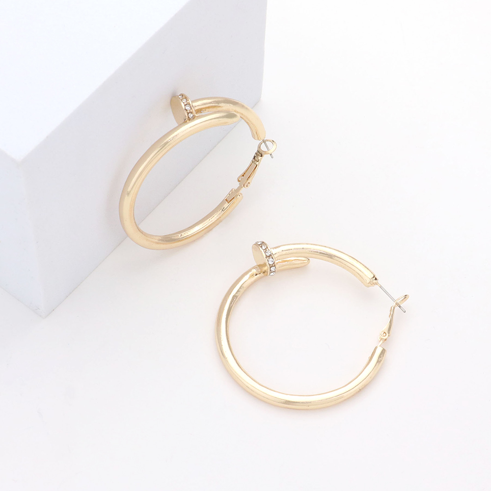 Rhinestone Embellished 2 Inch Metal Nail Hoop Earrings