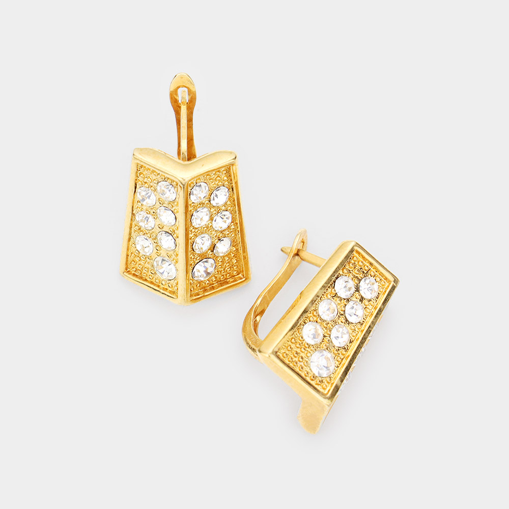 Gold Dipped CZ Baguette Stone Swirl Link Hoop Earrings