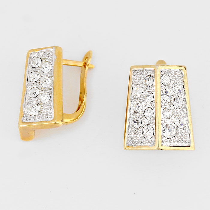 Glass Stone Embellished Diamond Frame Evening Earrings