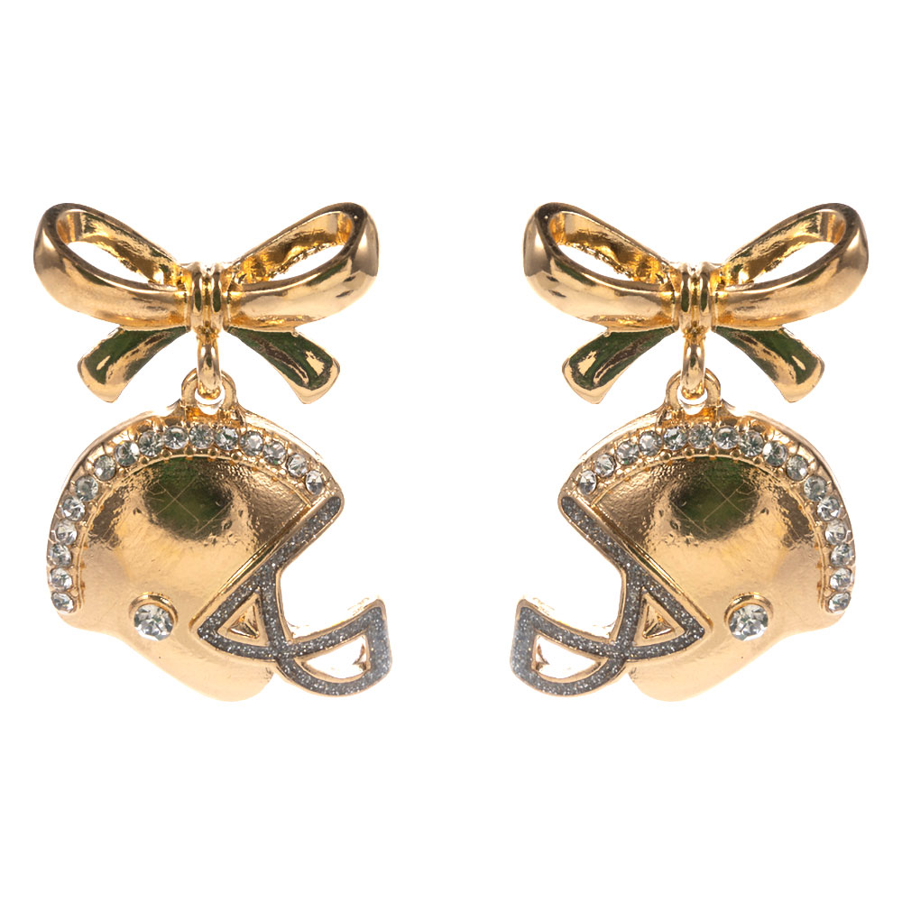 Details • Size : 1" X 1.4" • Titanium Post Back • Playful drop earrings featuring a detailed football helmet charm accented with a bow for spirited, feminine style. Designed to add movement and personality, these earrings are perfect for game day outfits, tailgates, team events, and casual wear, making them a standout choice for fan-inspired boutique accessory collections. • Hypoallergenic • Lead and Nickel Compliant
