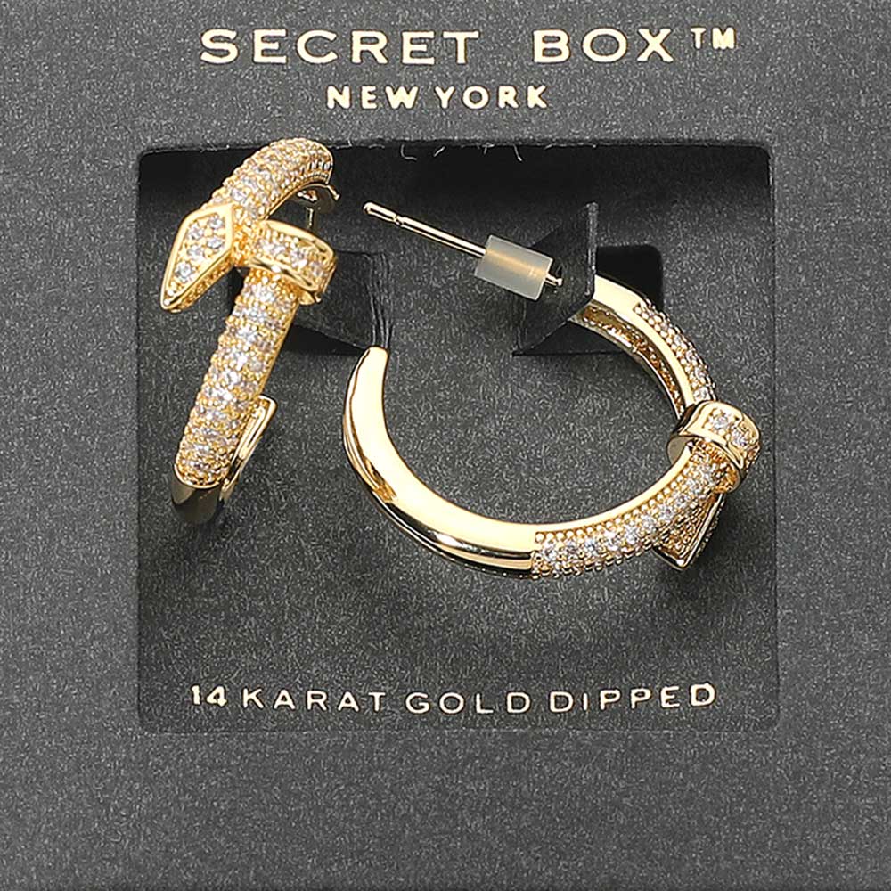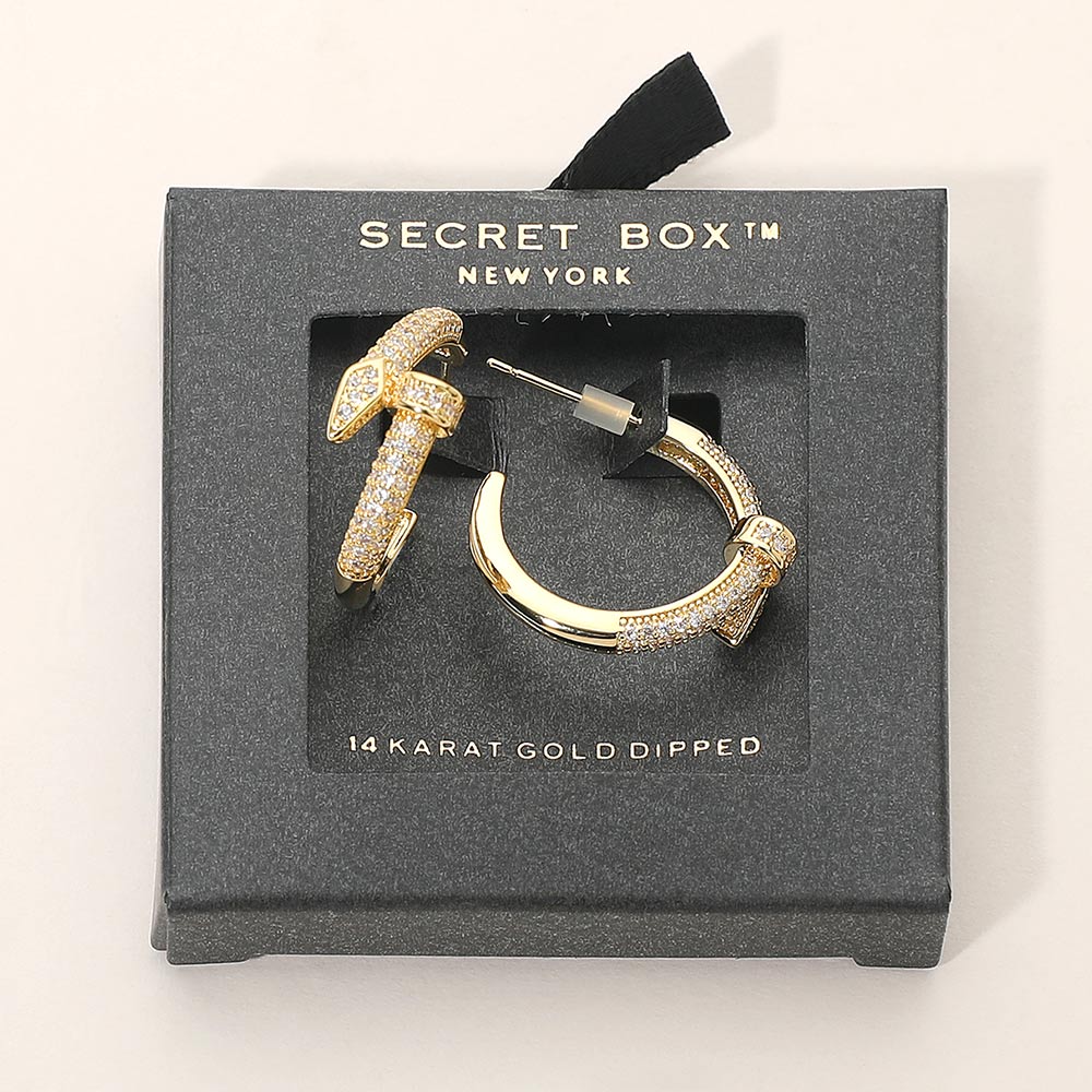 SECRET BOX_Sterling Silver Dipped Rhinestone Paved Nail Hoop Earrings