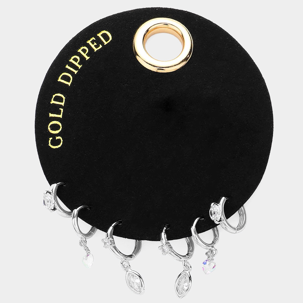 SECRET BOX_White Gold Dipped Stone Pointed Huggie Back 3Pairs Mini Hoop Earrings