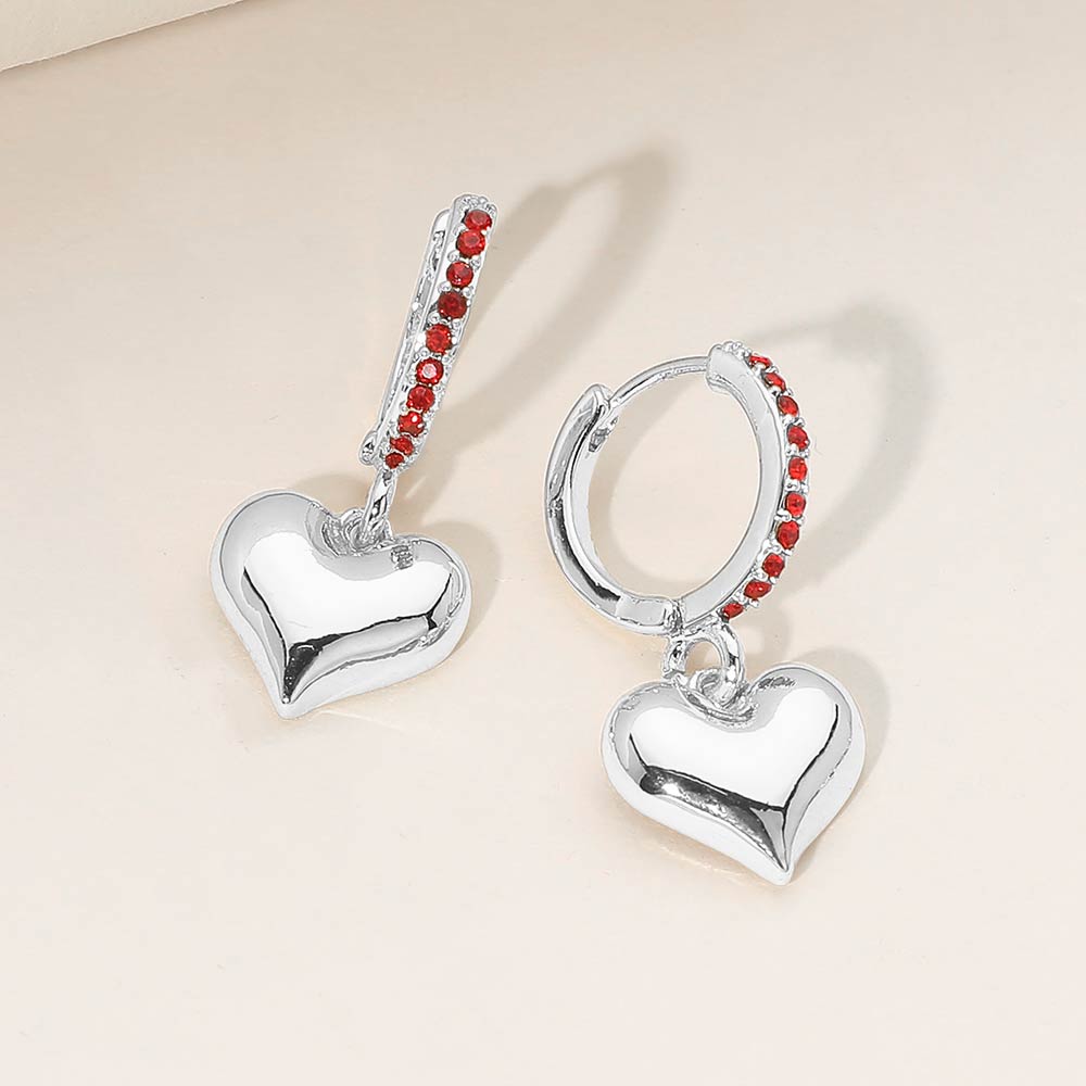 Details • Size : .075" X 1.4" • Huggie Back • These heart charm huggie hoop earrings feature a sleek hoop design accented with subtle sparkle and a dangling heart charm for added movement and shine. Designed for effortless everyday wear, they pair easily with casual looks or layered styles, making them a versatile choice for gifting, boutiques, and curated jewelry collections. • Sterling Silver Dipped • Lead and Nickel Compliant