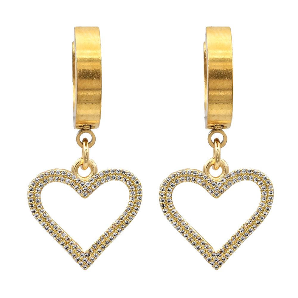 Stainless Steel CZ Stone Paved Open Heart Charm Dangle Huggie Earrings Stainless Steel CZ Stone Paved Open Heart Charm Dangle Huggie Earrings Stainless Steel CZ Stone Paved Open Heart Charm Dangle Huggie Earrings