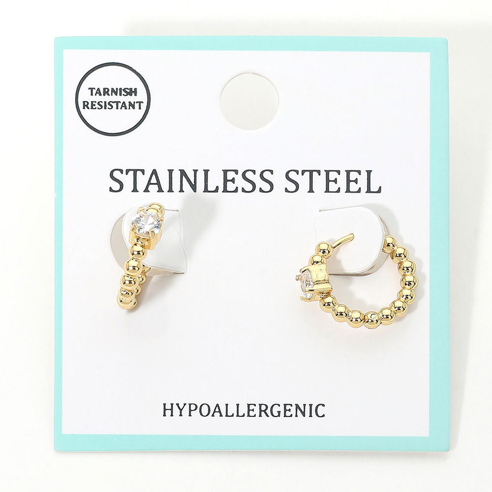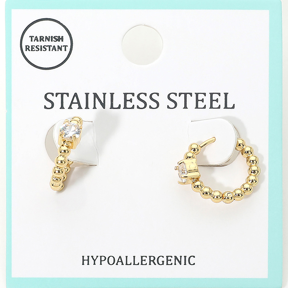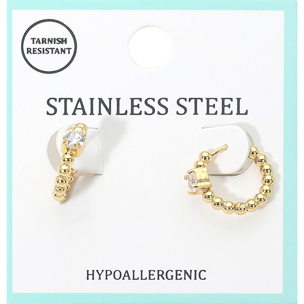 Details • Size : 0.6" X 0.6" X 0.2" • Huggie Back • Tarnish Resistant • Minimal beaded huggie hoop earrings featuring a refined solitaire accent for subtle sparkle. Designed for everyday comfort with a secure closure, this versatile style layers easily and transitions from casual to polished looks, making it ideal for gifting and boutique assortments. • Hypoallergenic • Stainless Steel