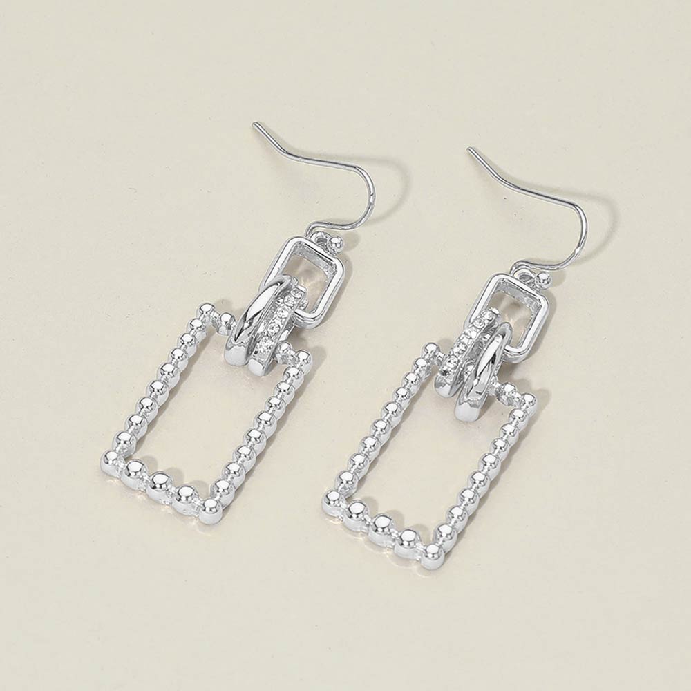 Details • Size : 0.75" X 1.8" • Fish Hook Back • Add modern dimension to your accessory assortment with these linked rectangle beaded drop earrings. Featuring layered geometric elements and delicate beaded detailing, this design creates eye-catching movement with a refined edge. Easy to style for both casual and elevated looks, these earrings offer a balanced silhouette that works well for everyday wear, special occasions, gifting, and trend-forward collections seeking versatile statement pieces. • Lead and Nickel Compliant