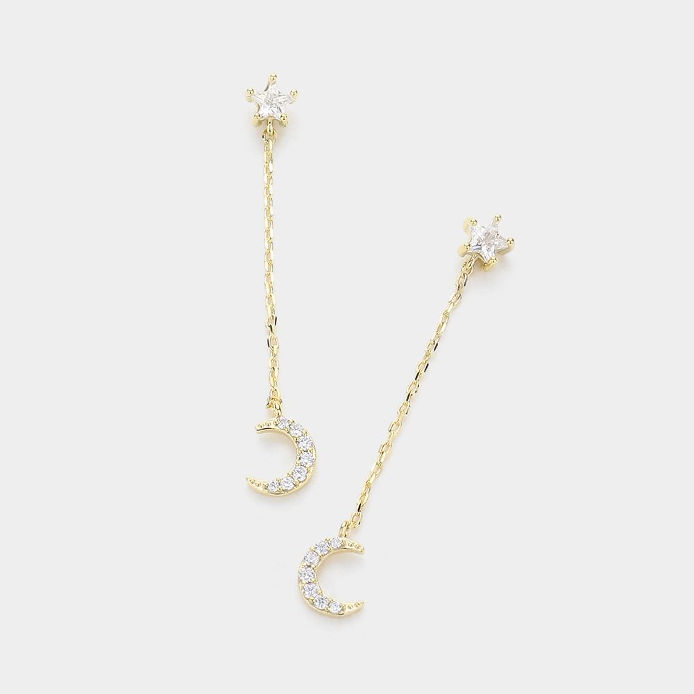 Secret Box _ 14K Gold Dipped CZ Moon Star Necklace