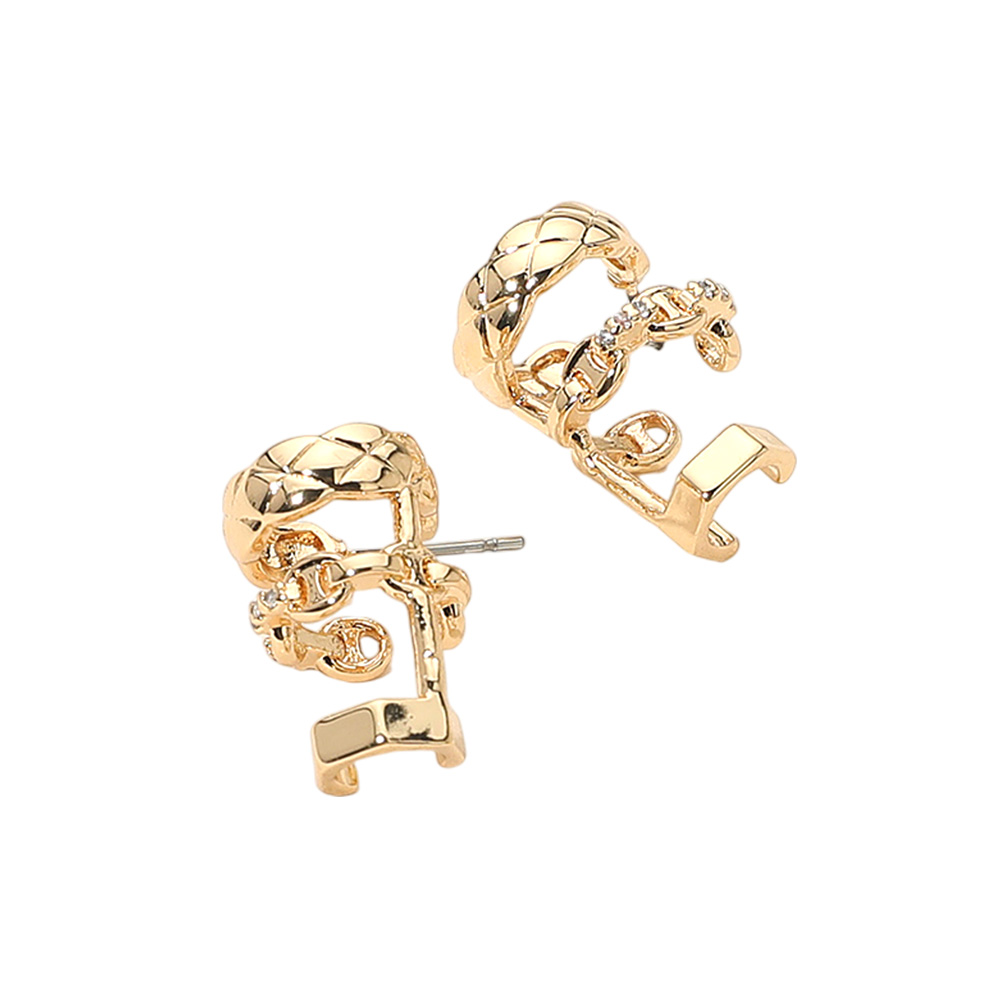 Details • Size : 0.5" X 0.75" • Post Back • Modern ear cuff earrings designed with a triple hoop stacked style and shimmering crystal accents. A stylish accessory to elevate any outfit, perfect for casual wear, parties, or evening occasions. • Brass • Lead and Nickel Compliant