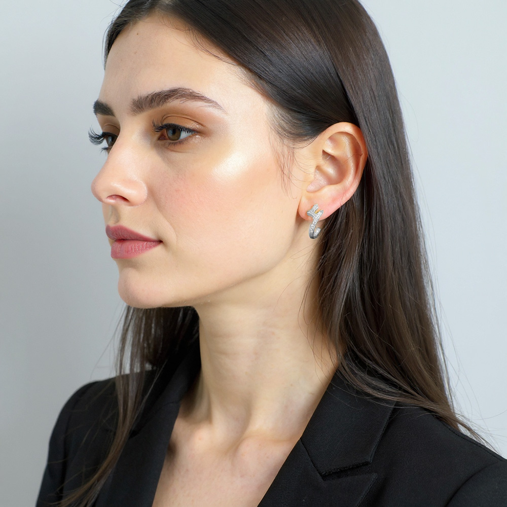 Details • Size : 0.8" X 0.8" X 0.4" • Post Back • Elevate your jewelry collection with these double band hoop earrings featuring sparkling CZ accents. The layered design adds depth and brilliance, offering a sophisticated yet modern touch that transitions effortlessly from daywear to evening style. • Brass • CZ Cubic Zirconia • Gold Dipped • Hypoallergenic • Lead and Nickel Compliant • Made In Korea
