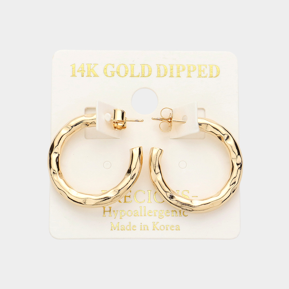 14K Gold Dipped 1 Inch Crushed Metal Hoop Earrings