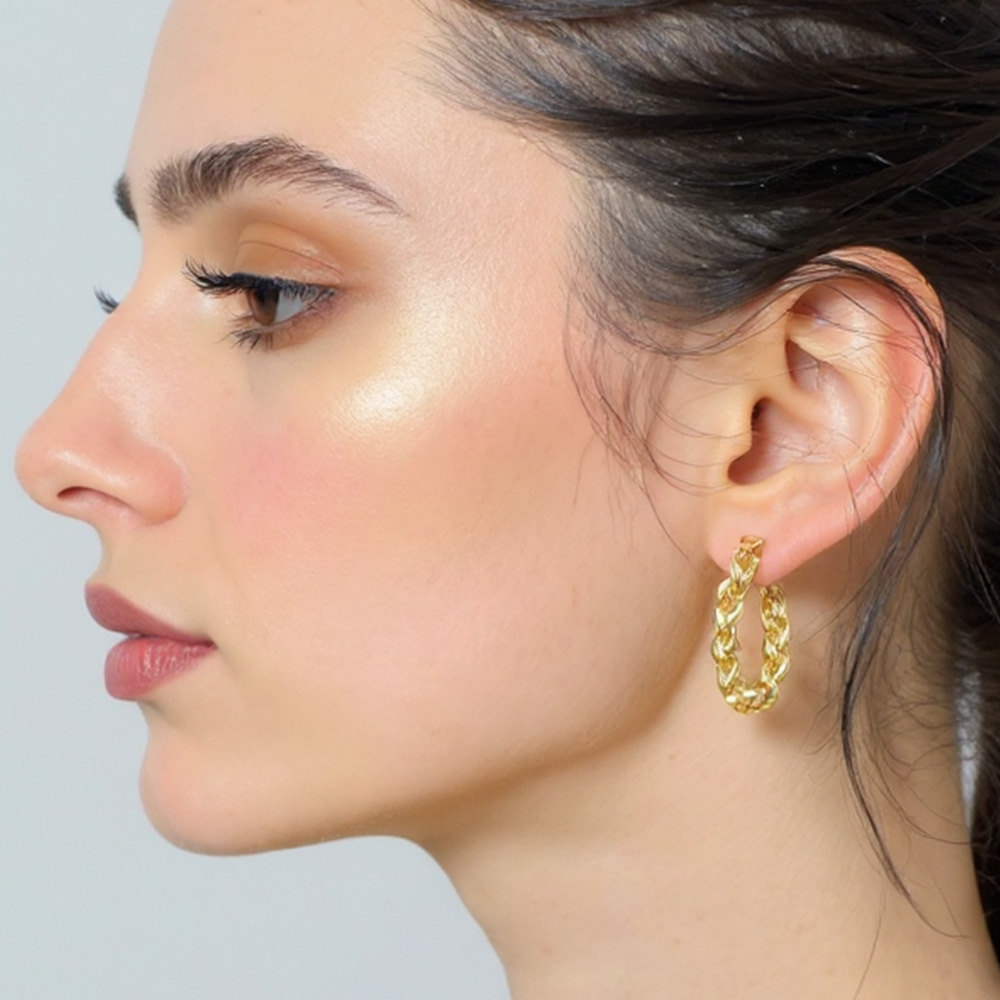 White Gold Dipped Braided Chain Link Hoop Earrings