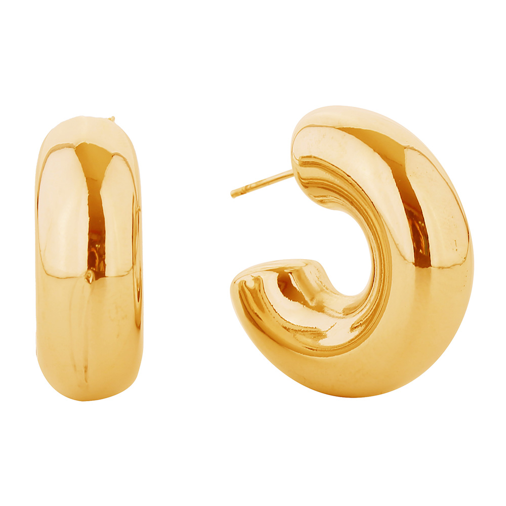 • Make a bold fashion statement with these chunky sculptural hoop earrings, designed with a smooth, polished finish for a modern edge. Perfect for elevating everyday outfits or adding drama to evening looks, these versatile hoops balance elegance and trend-forward style in one accessory.