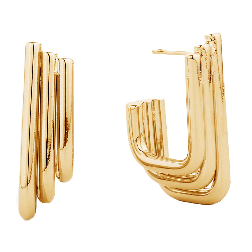 • Contemporary hoop earrings featuring a layered multi-bar structure with a geometric silhouette. Designed to stand out, these earrings bring modern elegance and artistic flair, making them a striking statement piece for both casual and formal looks.