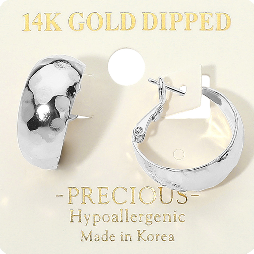 14K Gold Dipped Hypoallergenic Hammered Hoop Earrings