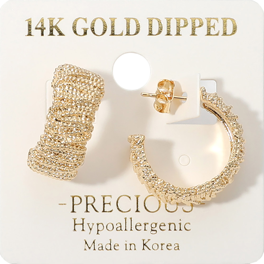 14K Gold Dipped Hypoallergenic Textured Hoop Earrings