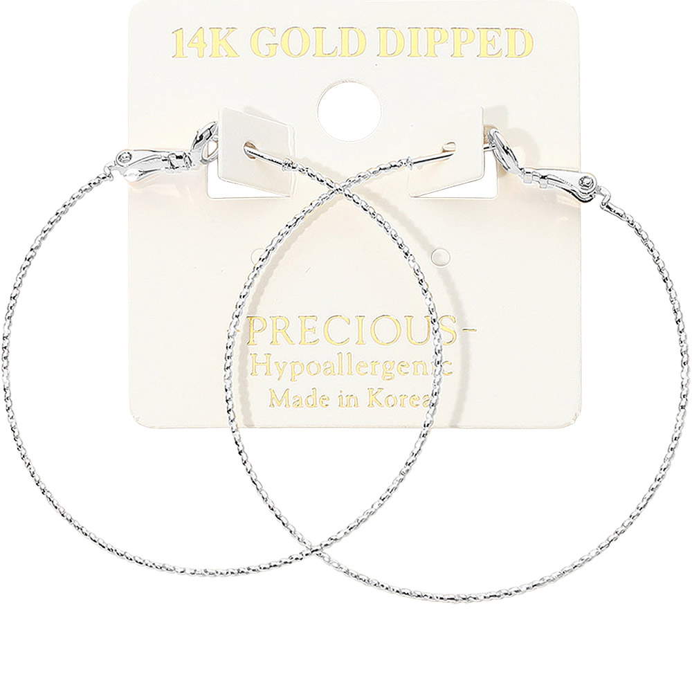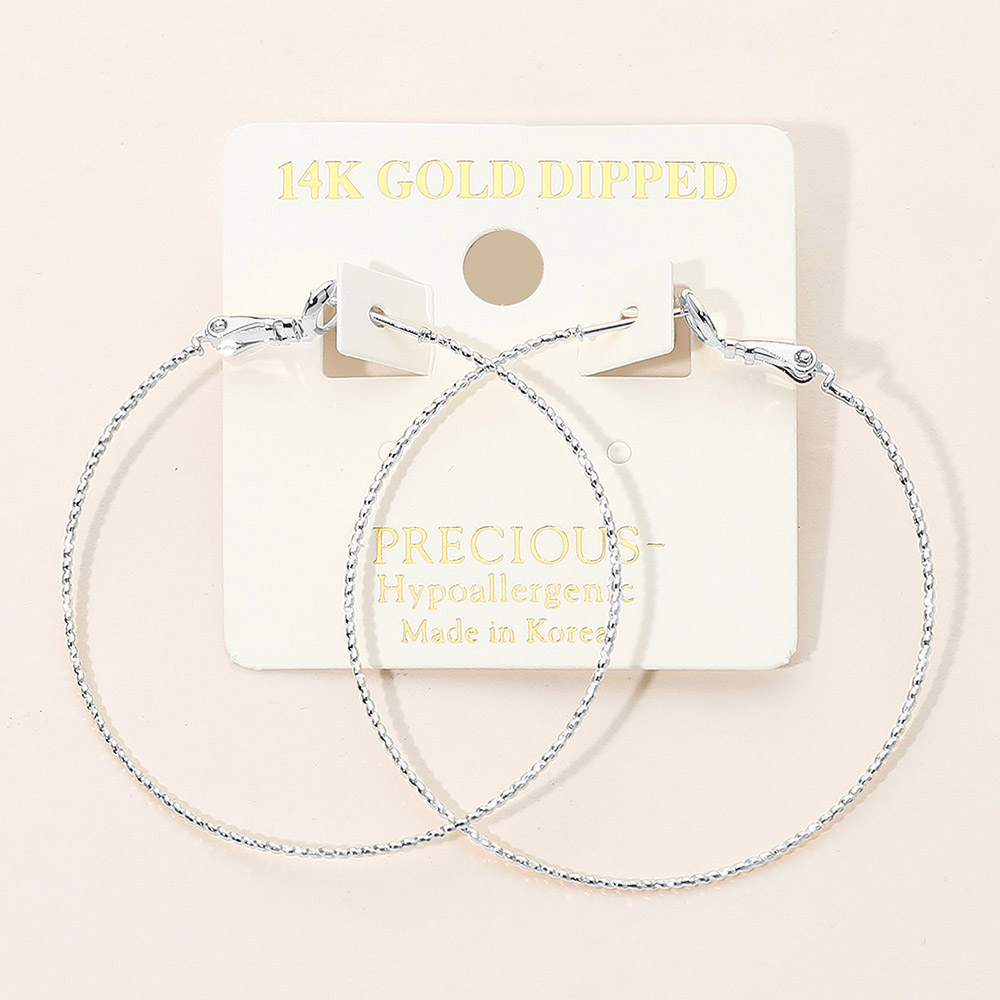 • Lightweight hoop earrings featuring a thin, textured surface for a stylish statement. Designed for comfort and elegance, these hoops are perfect for daily wear or special events. An easy match for casual and dressy looks alike.