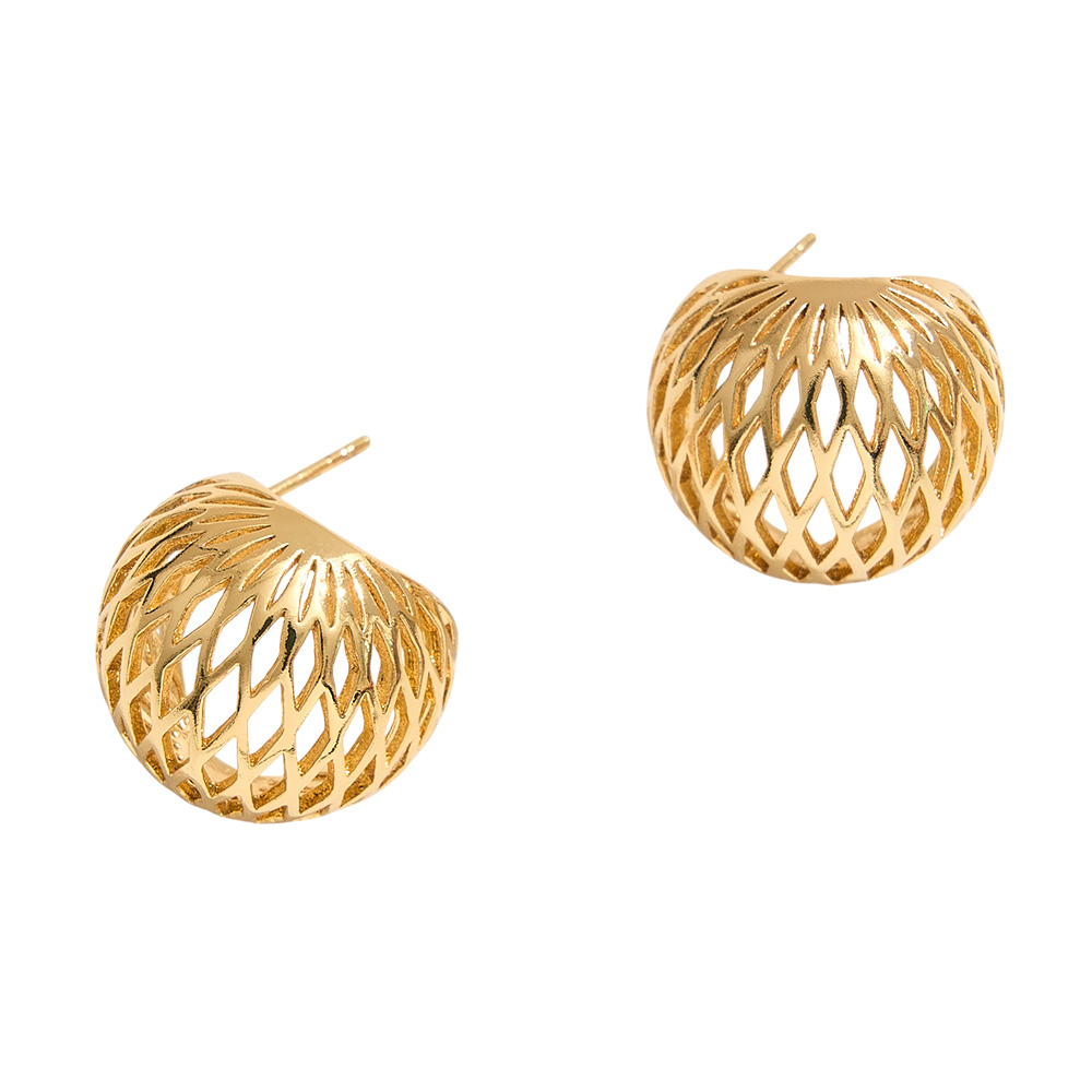 14K Gold Dipped Modern Mesh Dome Earrings 14K Gold Dipped Modern Mesh Dome Earrings 14K Gold Dipped Modern Mesh Dome Earrings
