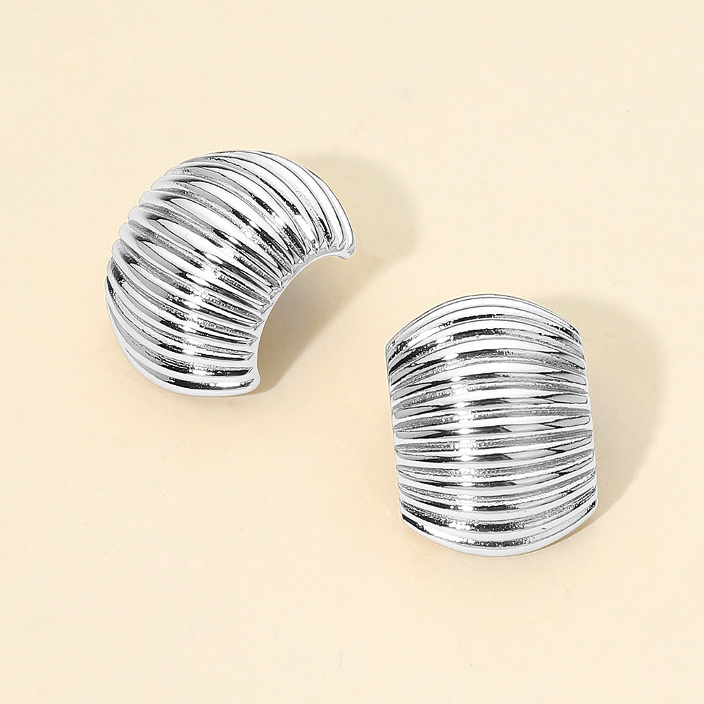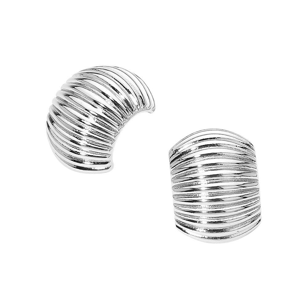 • Stand out with these ribbed dome half-hoop earrings featuring a bold, sculpted silhouette and textured ridged finish. Their statement-making yet versatile design adds modern elegance, making them the perfect piece to elevate both casual and dressy outfits.
