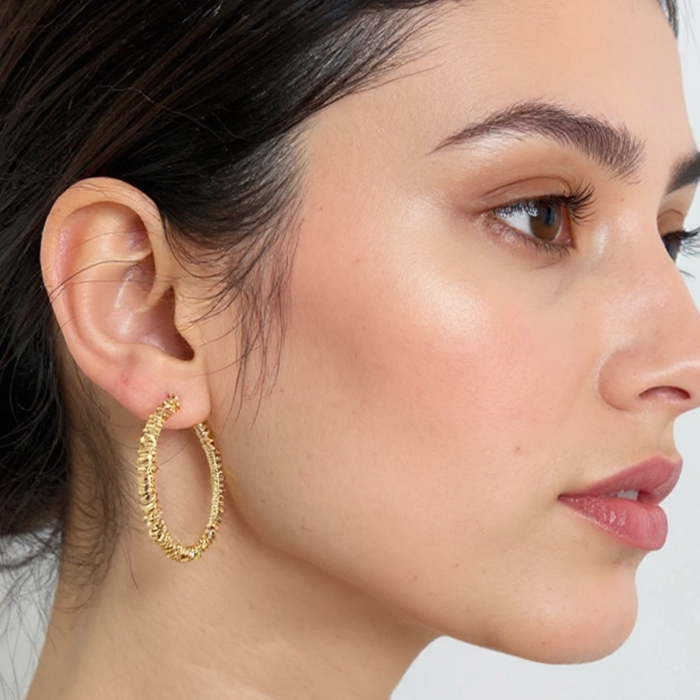 • Elevate your everyday style with these textured coil hoop earrings. Featuring a unique ridged design that wraps seamlessly around the hoop, they bring bold sophistication and timeless charm, perfect for dressing up casual outfits or adding flair to evening looks.