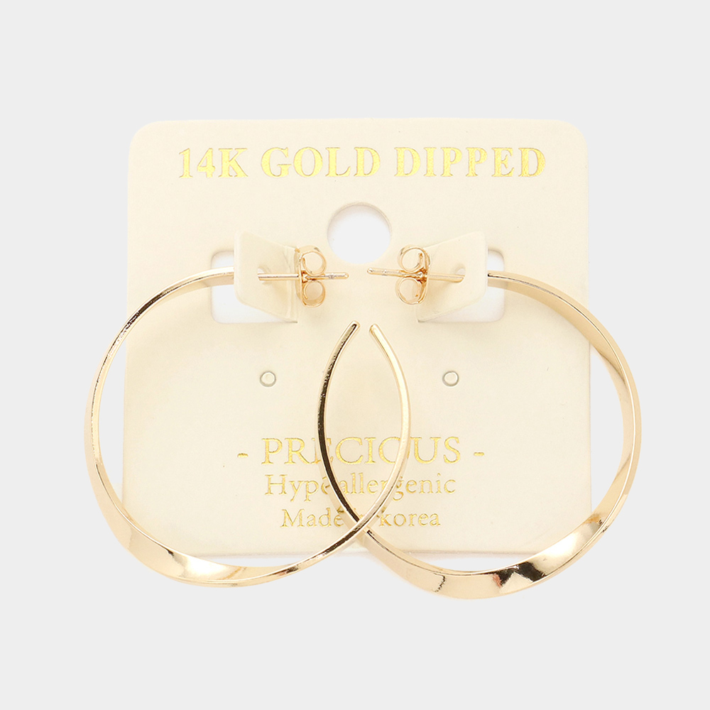 14K Gold Dipped Twisted Metal Hoop Earrings
