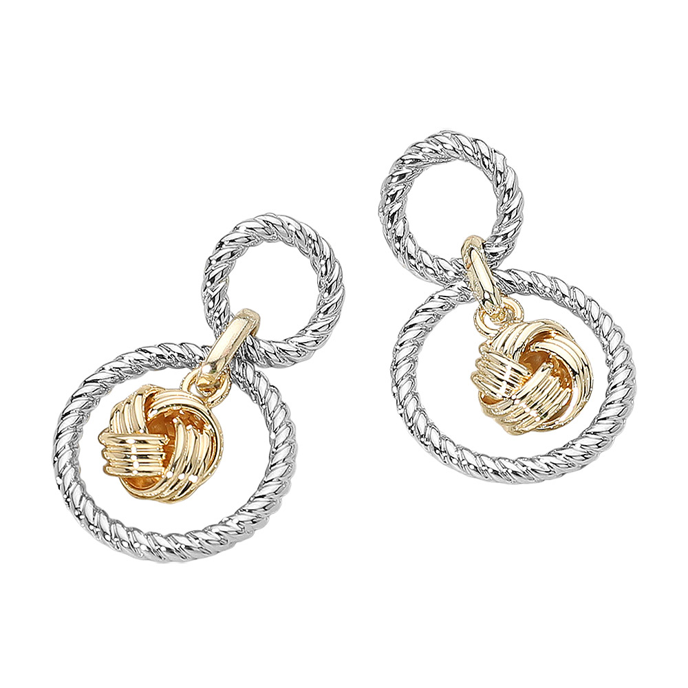 Details • Size : 1" X 1.5" • Post Back • Chic double hoop knot drop earrings featuring a twisted hoop design with a detailed knot charm. Lightweight and stylish, perfect for everyday wear or adding a touch of elegance to special occasions. A versatile accessory that enhances any outfit with its refined and modern look. • Gold Dipped