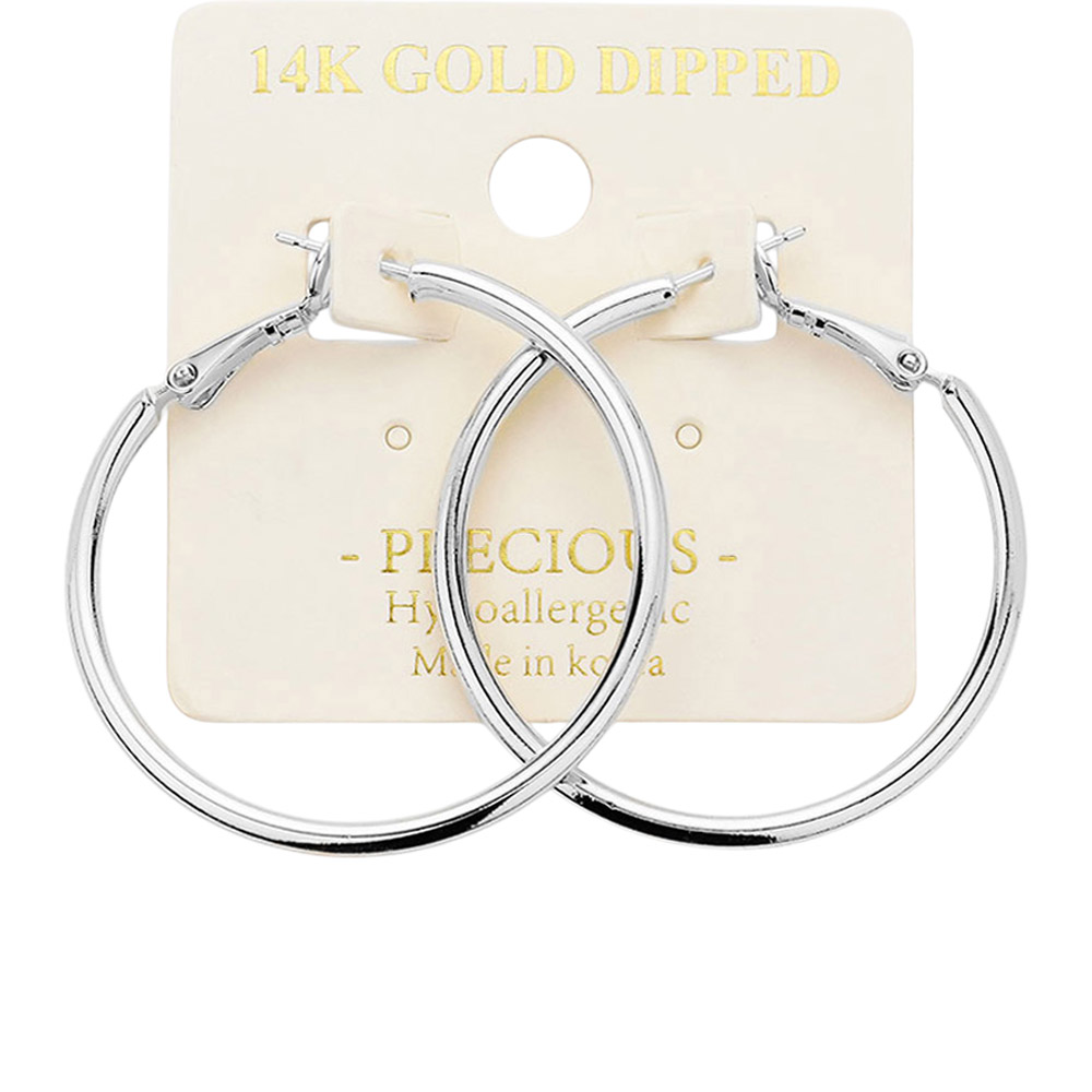 14K White Gold Dipped 1.5 Inch Hypoallergenic Hoop Earrings