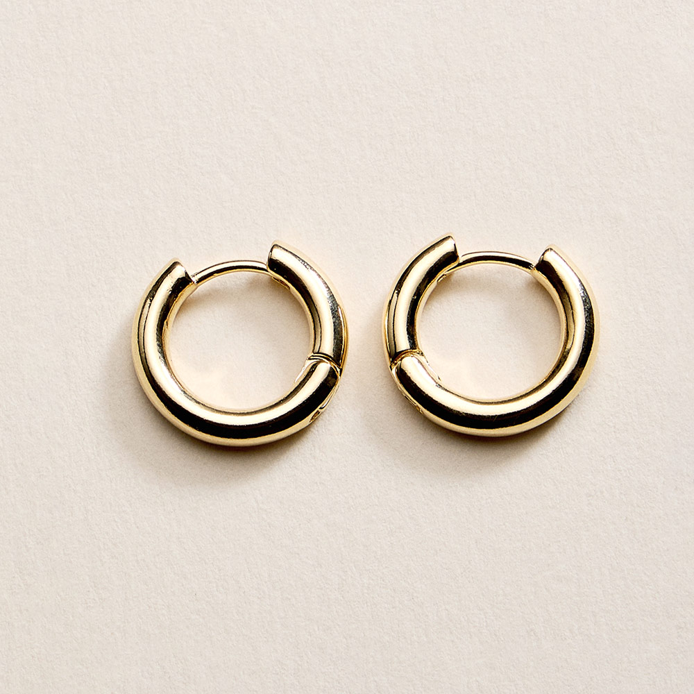 Details • Size : 0.6" X 0.6" • Huggie Back • Timeless mini hoop earrings designed with a smooth rounded silhouette for a clean, polished look. Their compact size makes them perfect for daily wear, stacking with other earrings, or minimalist styling. A versatile essential that transitions effortlessly from casual outfits to refined looks, ideal for everyday merchandising and gifting collections. • Gold Filled • Hypoallergenic • Lead and Nickel Compliant • Made In Brazil
