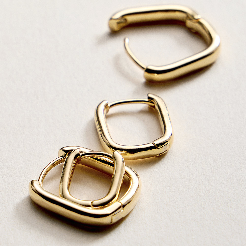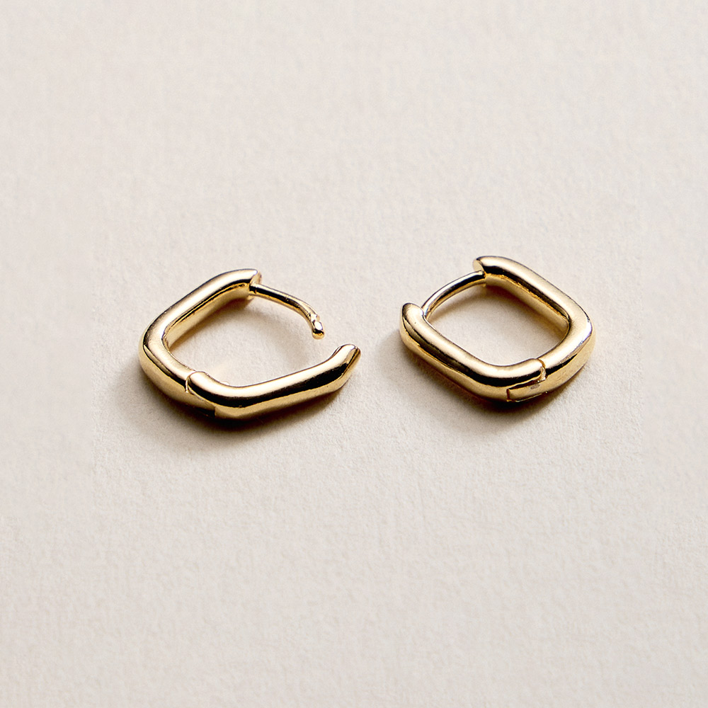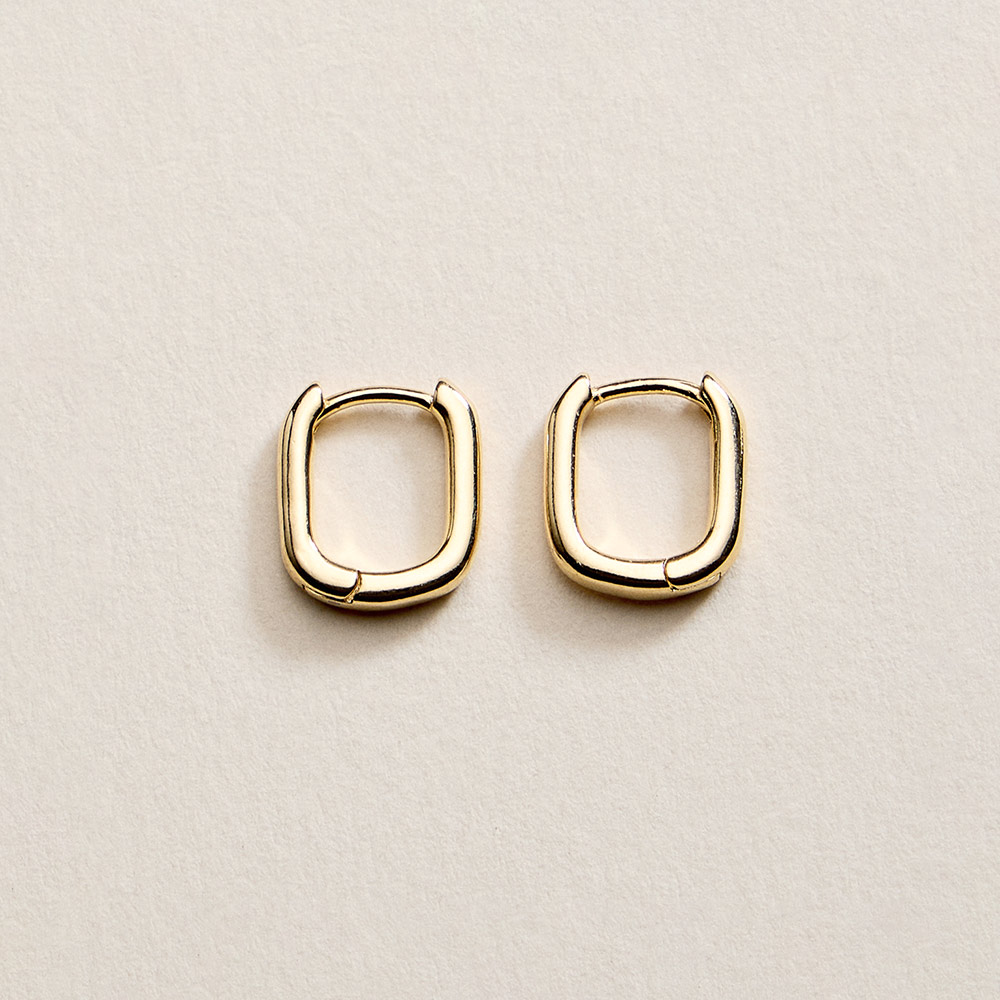 Details • Size : 0.3" X 0.5" • Huggie Back • Sleek rectangular huggie earrings designed for a clean, modern look with subtle structure. Compact and lightweight, they offer easy wear and a polished finish that pairs effortlessly with casual or refined outfits, perfect for daily styling, layering, or a minimalist jewelry collection. • Lead and Nickel Compliant • Hypoallergenic • Gold Filled • Made In Brazil