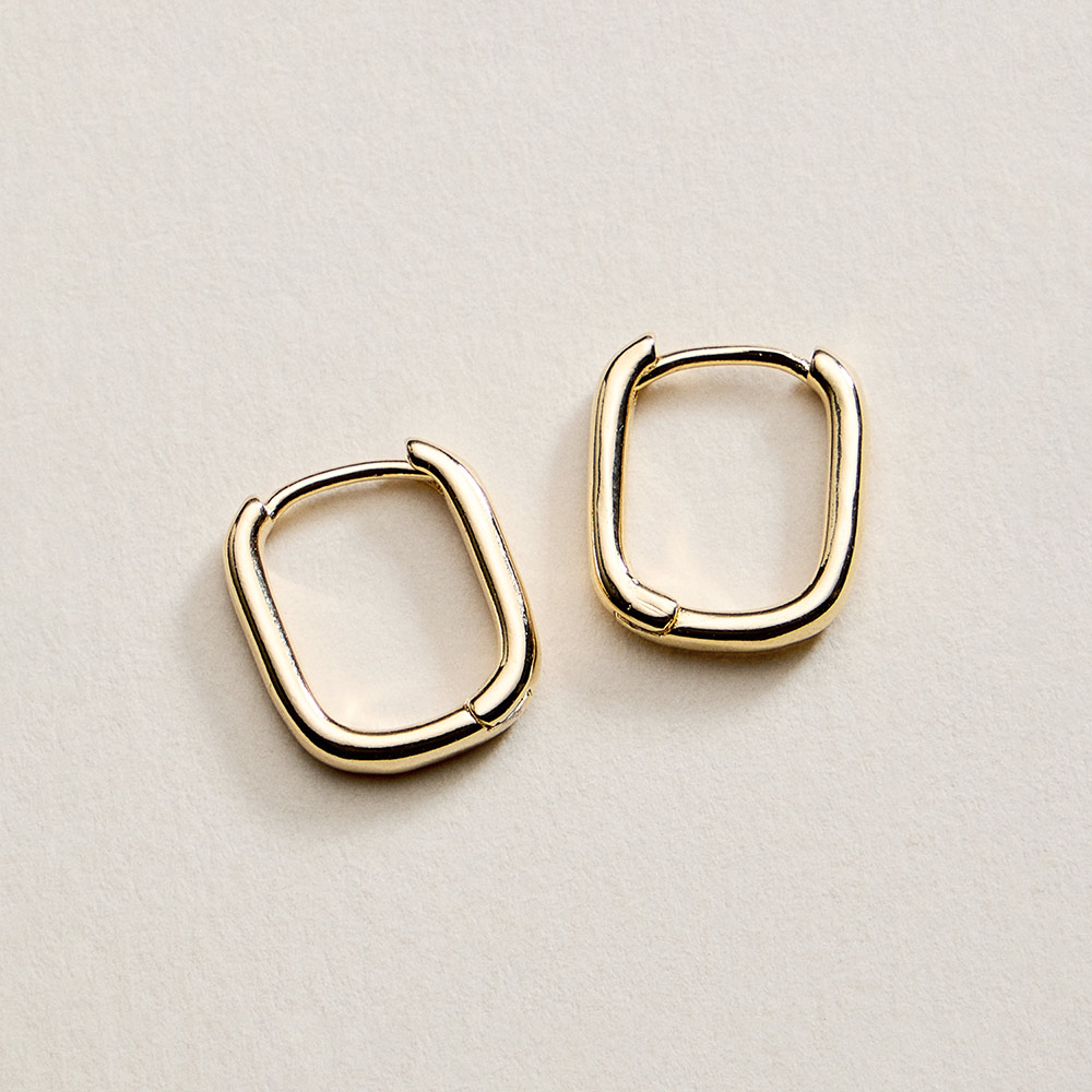 Details • Size : 0.4" X 0.6" • Huggie Back • Sleek rectangular huggie earrings designed for a clean, modern look with subtle structure. Compact and lightweight, they offer easy wear and a polished finish that pairs effortlessly with casual or refined outfits, perfect for daily styling, layering, or a minimalist jewelry collection. • Lead and Nickel Compliant • Hypoallergenic • Gold Filled • Made In Brazil