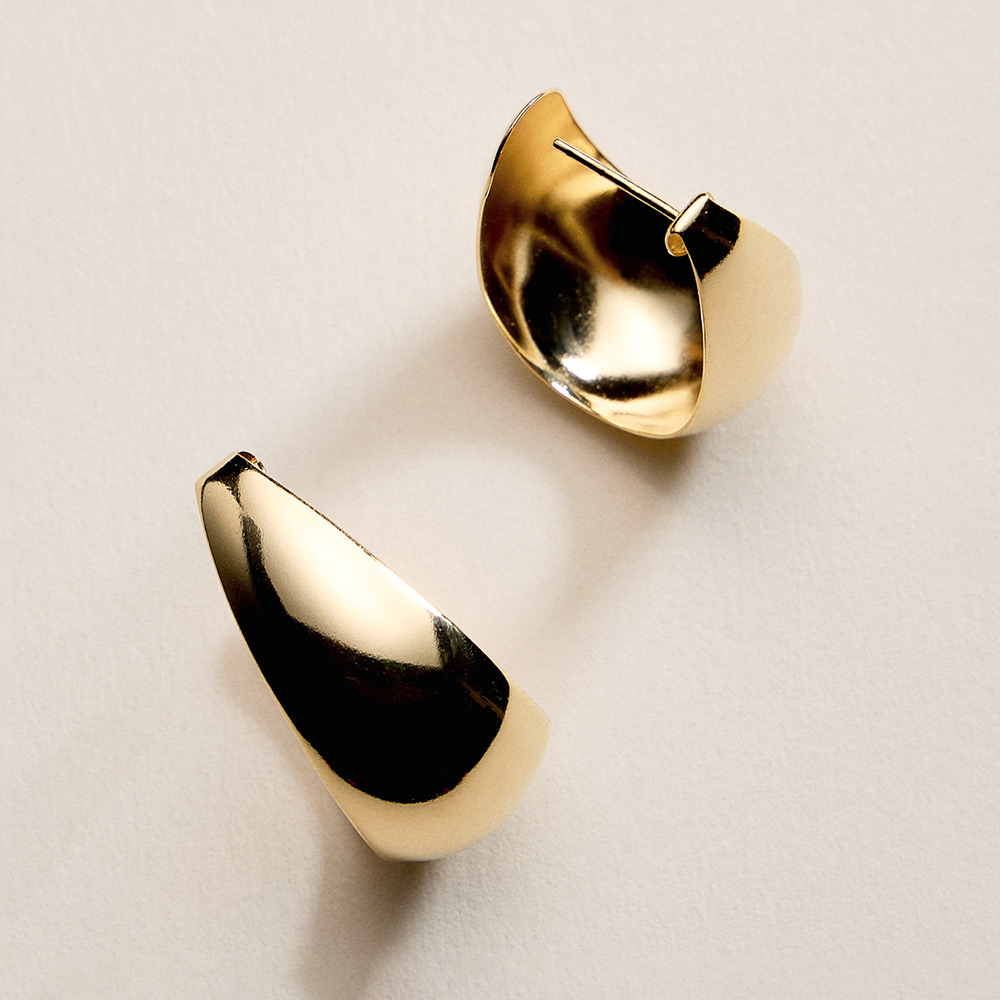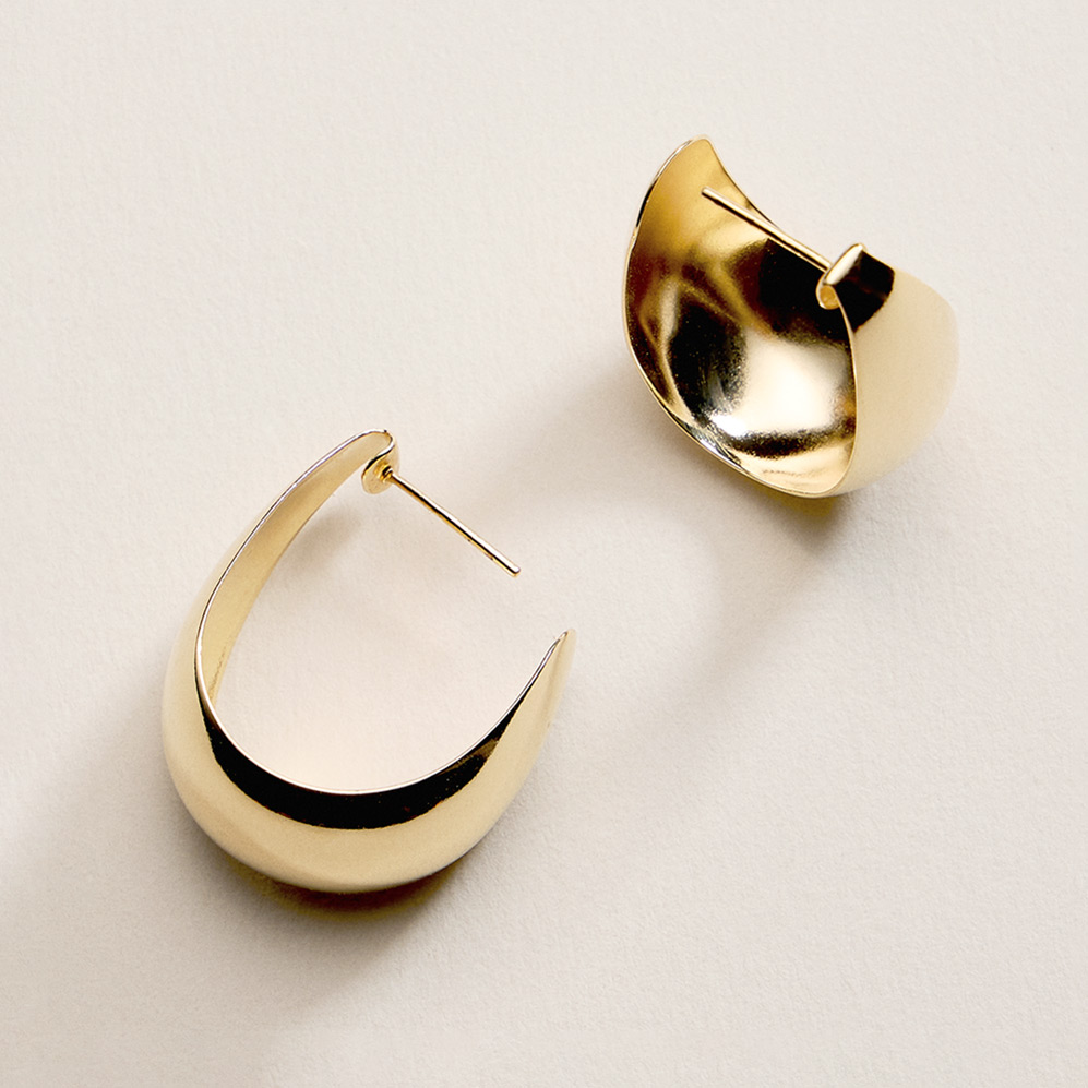 Details • Size : 1" X 1.25" X 0.6" • Post Back • Classic teardrop hoop earrings designed with a smooth polished silhouette for timeless everyday wear. Lightweight yet bold in shape, these hoops add effortless elegance to casual outfits or dressy looks. Easy to style and comfortable for all-day wear, they are a versatile jewelry essential for modern collections, layering, and gift-ready displays. • Gold Filled • Hypoallergenic • Lead and Nickel Compliant • Made In Brazil