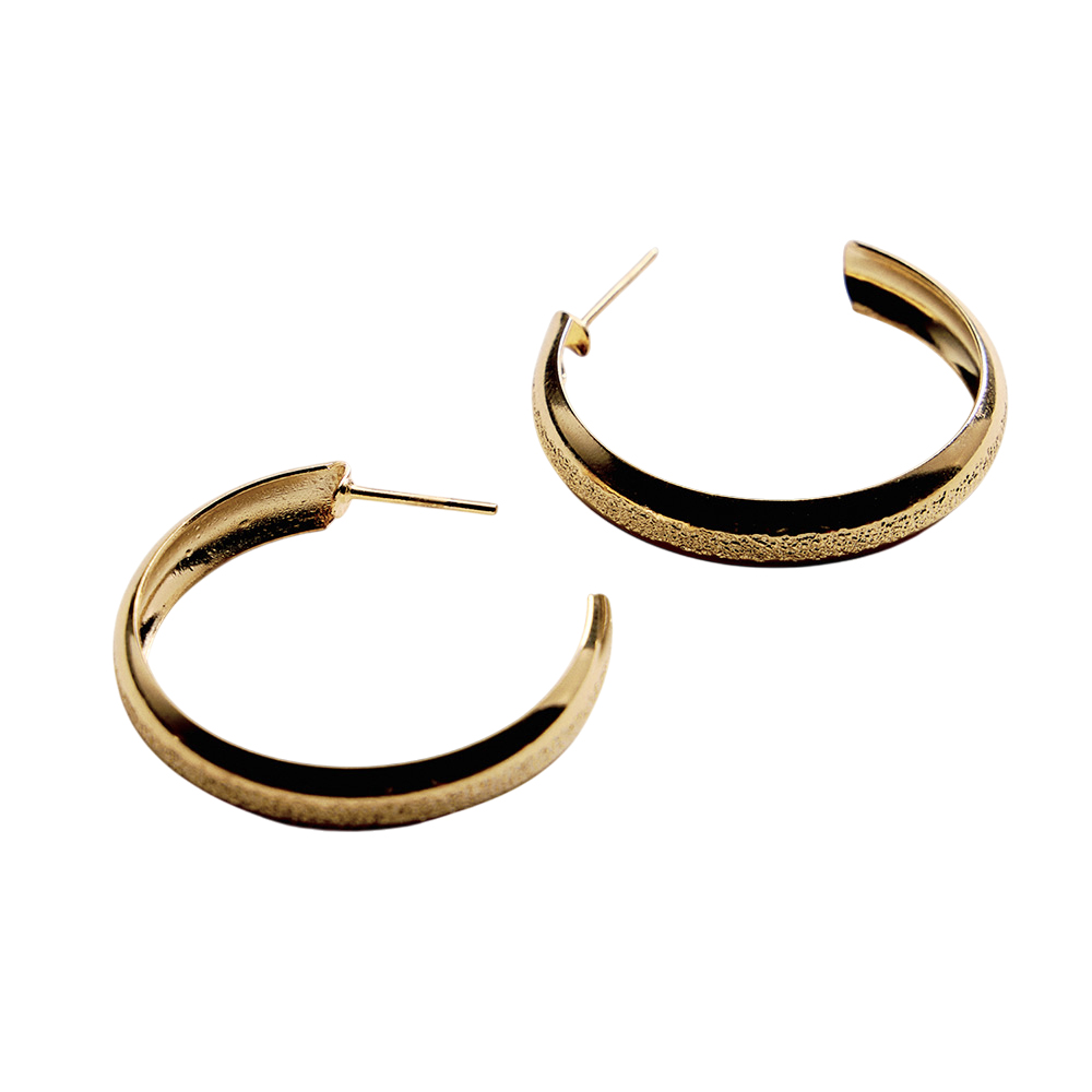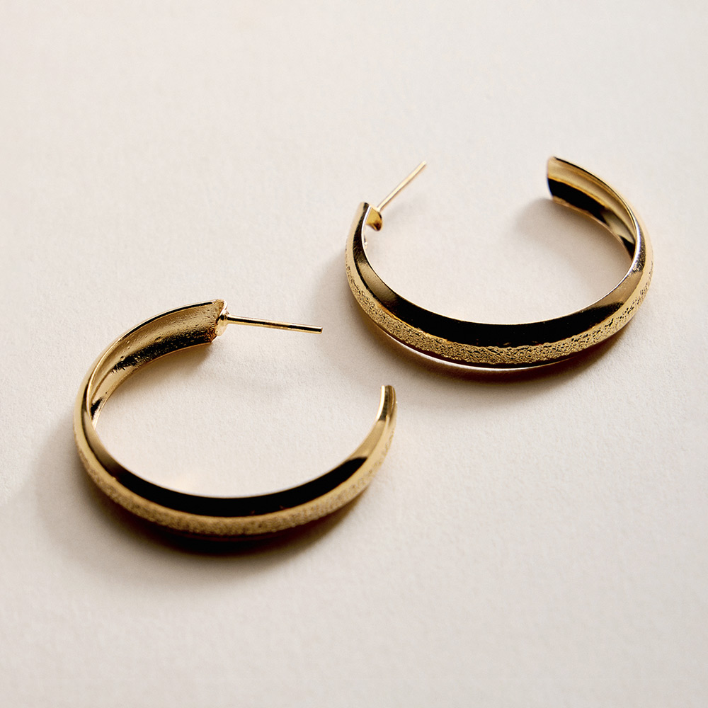 • Modern chunky hoop earrings featuring a softly curved shape with textured detailing for added depth. Designed for comfortable everyday wear, these hoops elevate casual looks and polished outfits alike, making them an easy statement accessory for versatile styling.