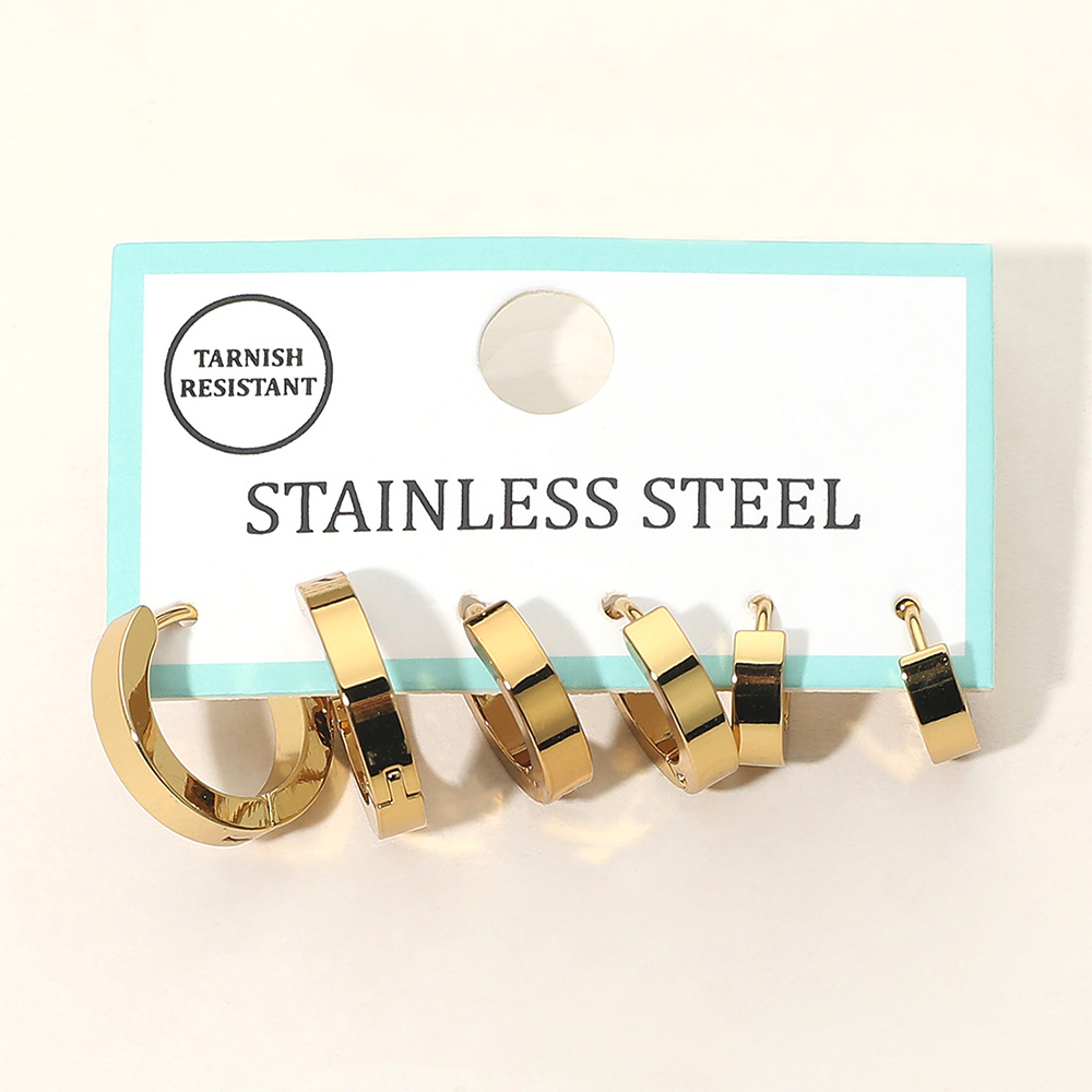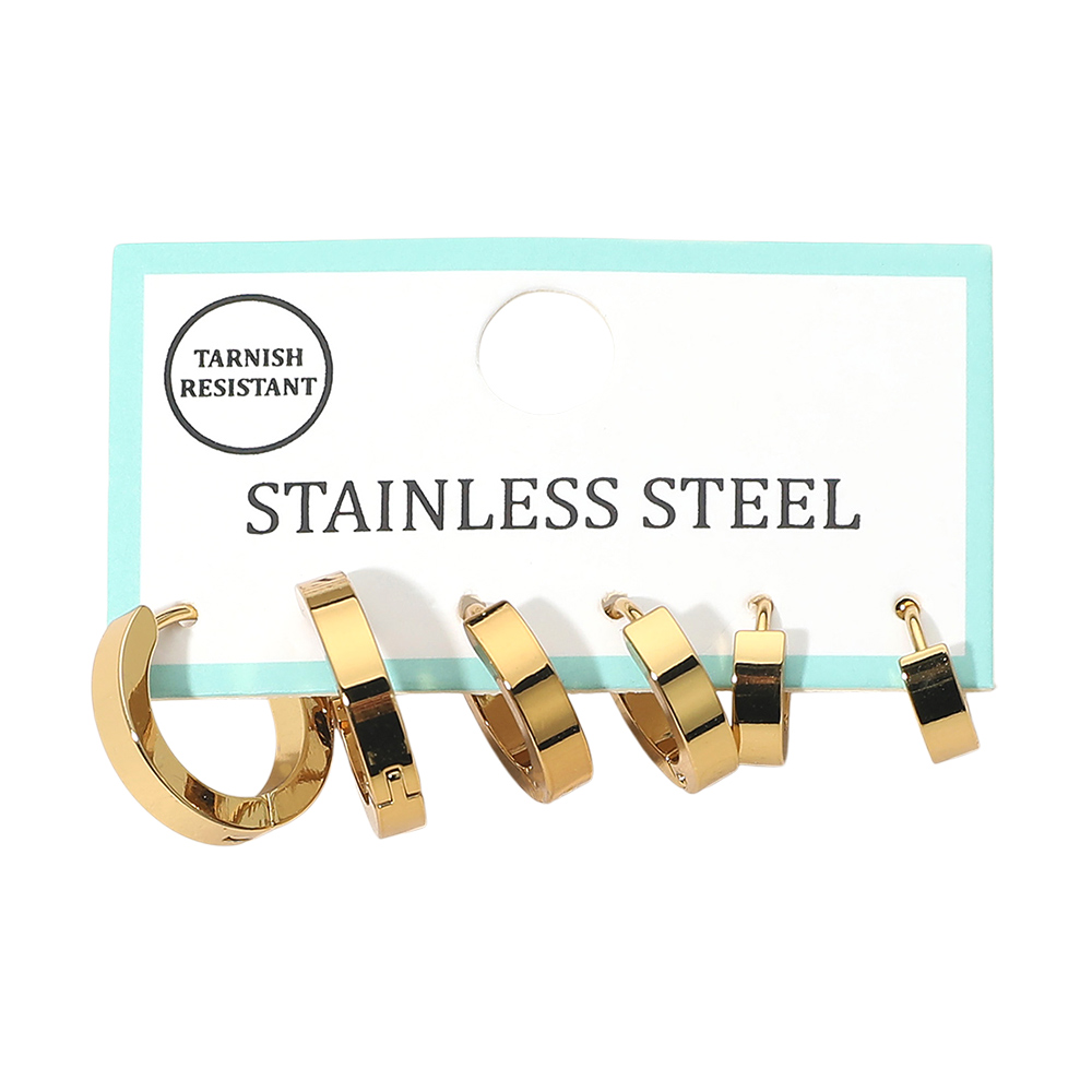 3Pairs - Stainless Steel Huggie Hoop Earring Set