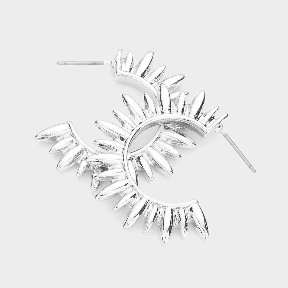 Bold Hammered Metal Sculpted Organic Leaf Drop Statement Earrings