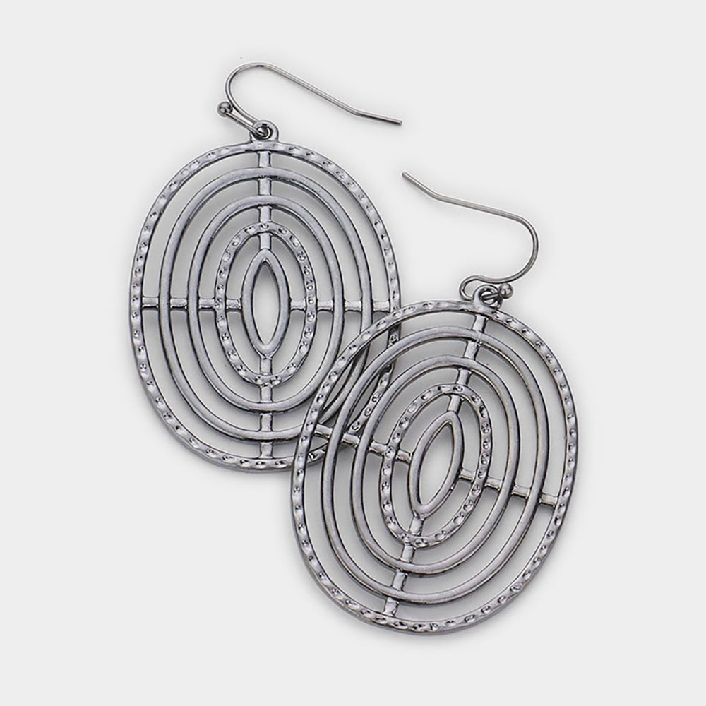 Abstract Metal Oval Dangle Earrings
