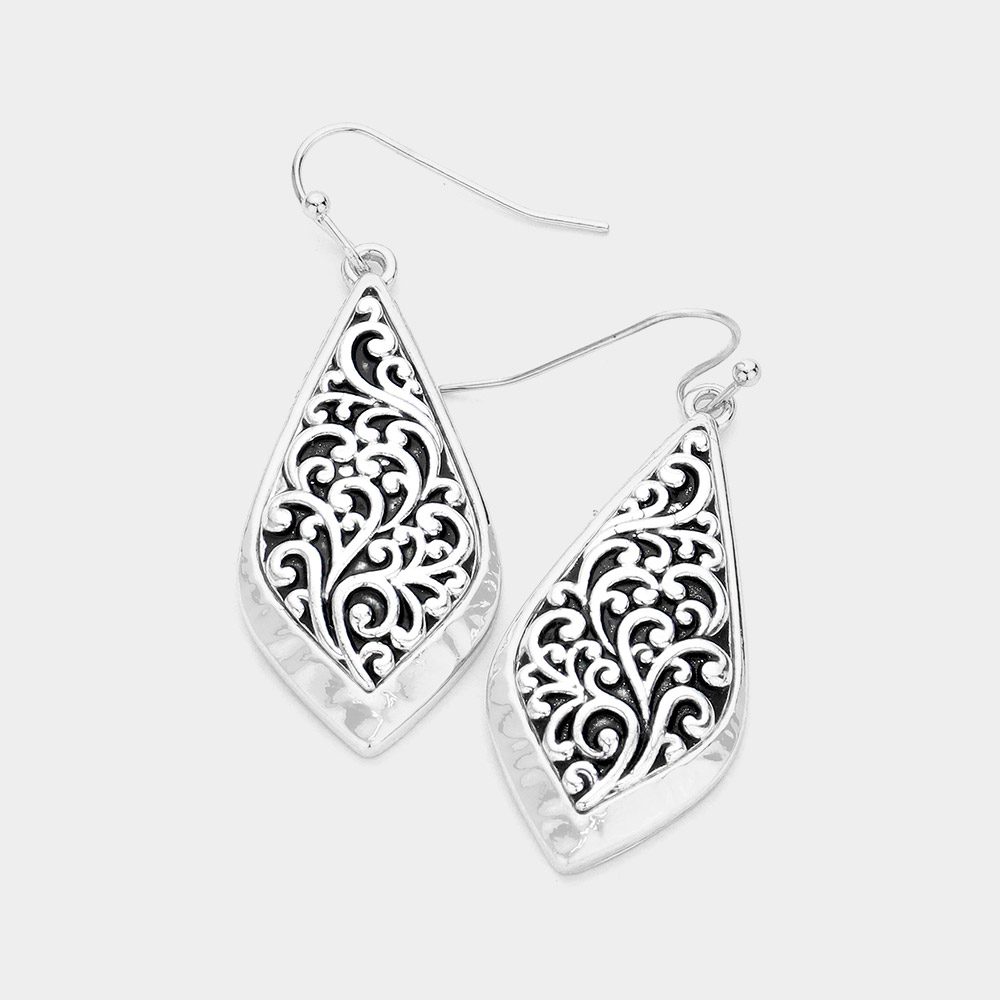 Abstract Pattern Teardrop Metal Filigree Dangle Earrings