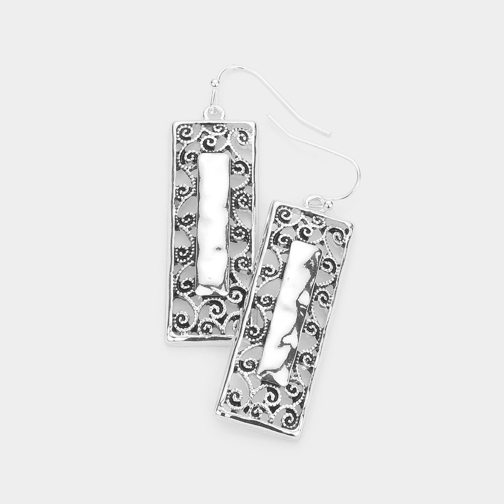 Antique Metal Scrollwork Frame Square Tile Beaded Stretch Bracelet