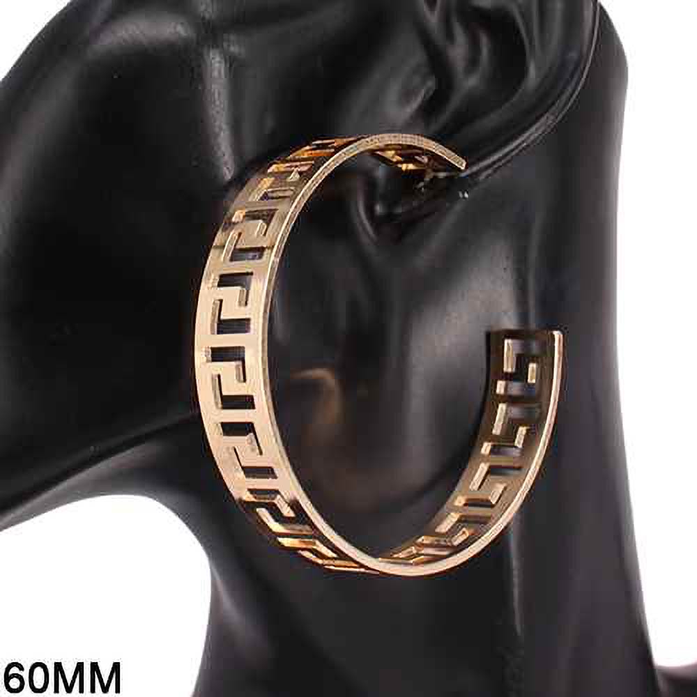Details • Size : 2.6" X 2.6" X 0.6" • Post Back • These geometric cutout hoop earrings feature a bold openwork metal design with clean lines and a structured silhouette. Designed to make a statement while remaining versatile, they pair effortlessly with casual looks, office outfits, or evening styling for a modern, confident finish. • Lead and Nickel Compliant