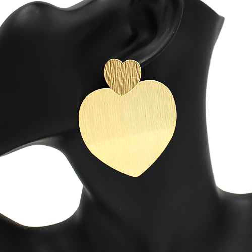 Details • Size : 2" X 2.4" • Post Back • These layered heart drop earrings feature a sculpted metal silhouette with subtle texture and graceful movement. Designed to make a statement without excess detail, they offer a modern romantic accent suitable for everyday wear, special occasions, or elevated styling. • Lead and Nickel Compliant